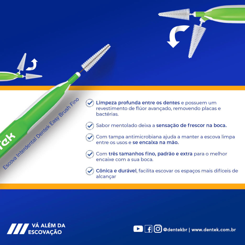A DenTek Easy Brush Grande facilita o alcance de áreas onde a escova comum não alcança, promovendo uma limpeza profunda e cuidadosa. Seu design funcional e portátil permite levar na bolsa ou mochila, sendo perfeita para o dia a dia. Garanta uma higiene completa e um sorriso saudável com a qualidade DenTek.