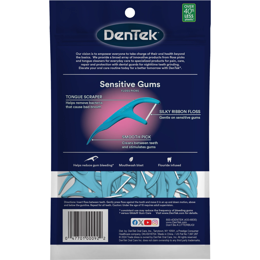 O Fio/Fita Dental DenTek Floss Picks Sensitive Gums é a escolha ideal para quem busca uma limpeza completa com máxima delicadeza. Especialmente desenvolvido para pessoas com gengivas sensíveis, ele alia conforto, eficácia e uma sensação refrescante a cada uso. Seu fio sedoso desliza suavemente entre os dentes graças às micro partículas de menta, que além de facilitar o uso, proporcionam uma refrescância duradoura. A haste texturizada e o limpador de língua completam uma higiene bucal completa e cuidadosa.