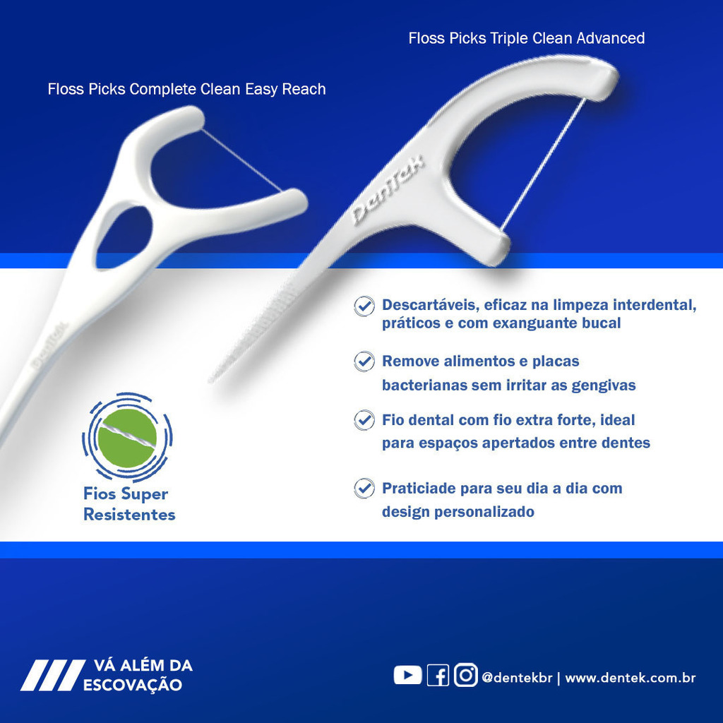 O DenTek Floss Picks Triple Clean é um fio dental com haste desenvolvido para uma limpeza bucal completa e multifuncional. Ideal para quem busca praticidade, eficiência e cuidado total com a saúde da boca, ele combina tecnologia e conforto em um único produto.