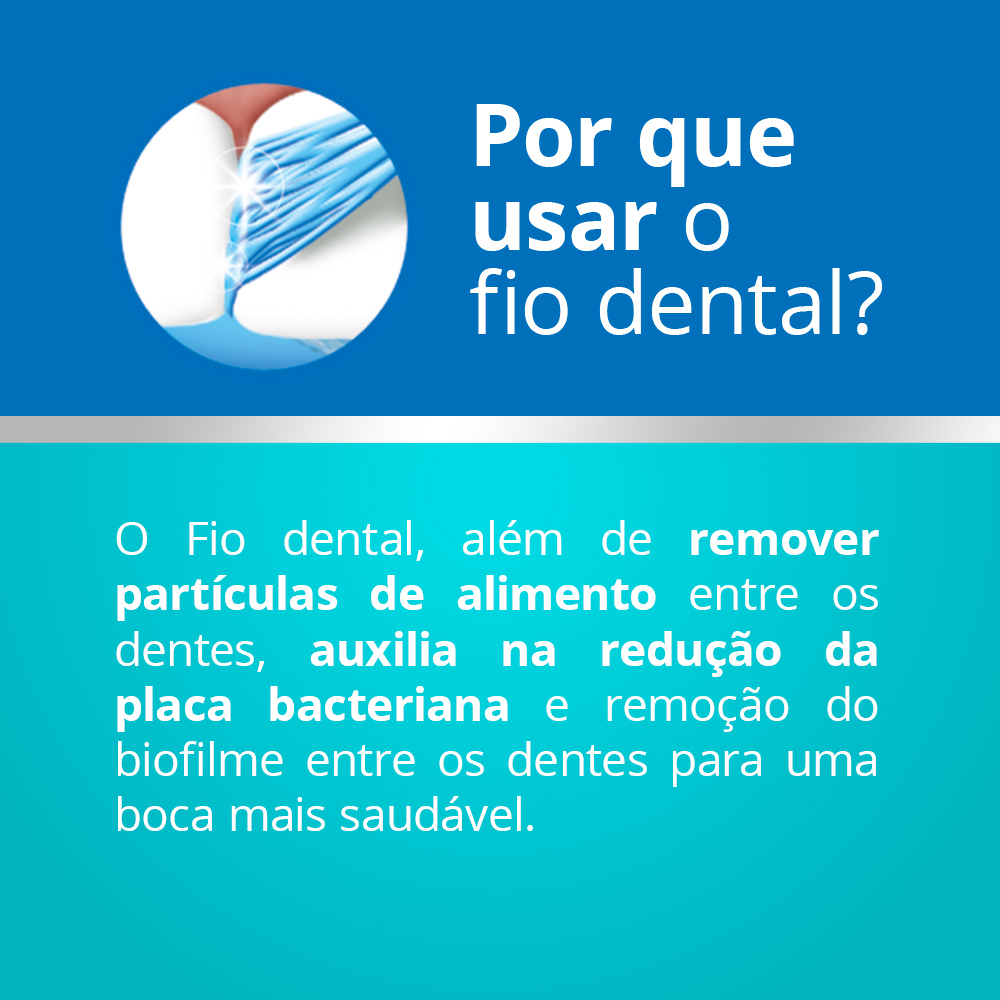 Como usar fio dental? Retire da embalagem cerca de 50cm de fio. Enrole as pontas nos dedos médios. Prenda o fio entre o dedo indicador e o polegar. Deslize o fio entre os dentes, penetrando um pouco na gengiva, com cuidado. Envolva e limpe todos os dentes.