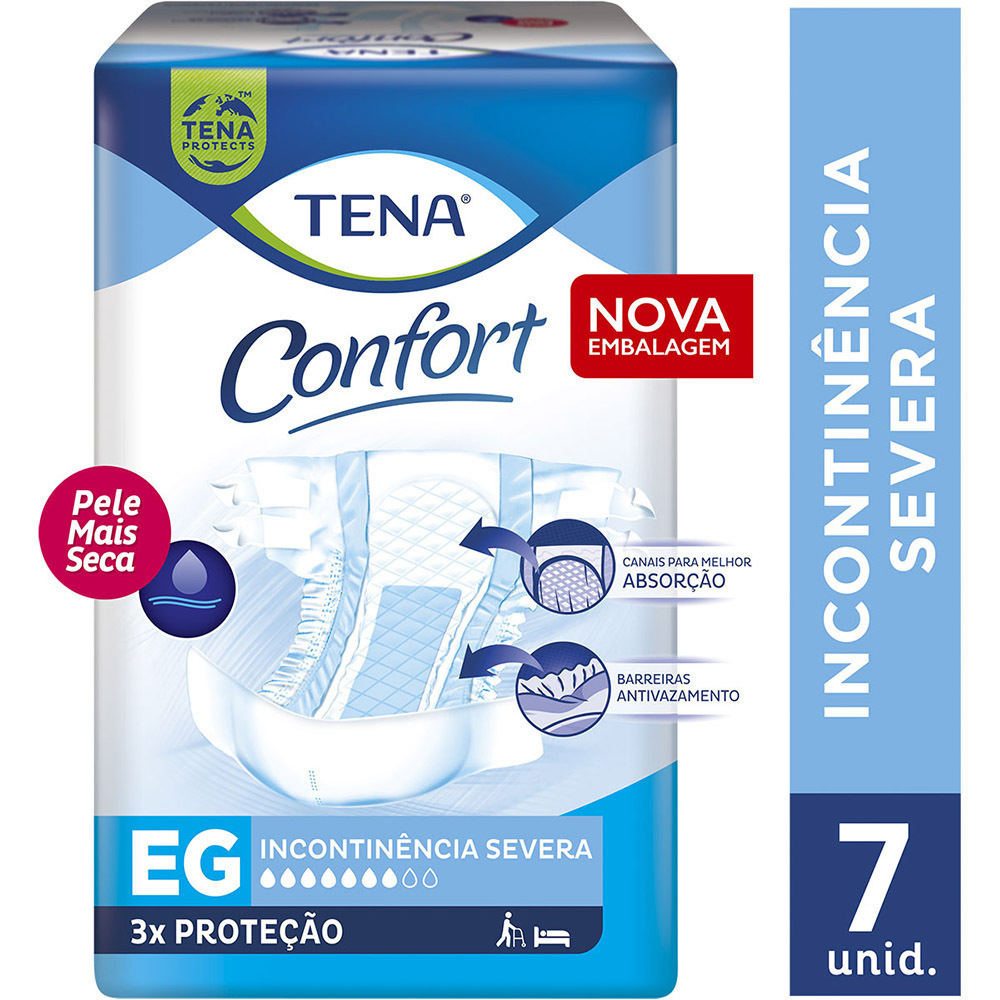 Fralda Geriátrica Descartável TENA Confort de uso diurno/noturno, desenvolvida para garantir proteção com muito conforto, segurança contra vazamentos e cuidado com a pele.