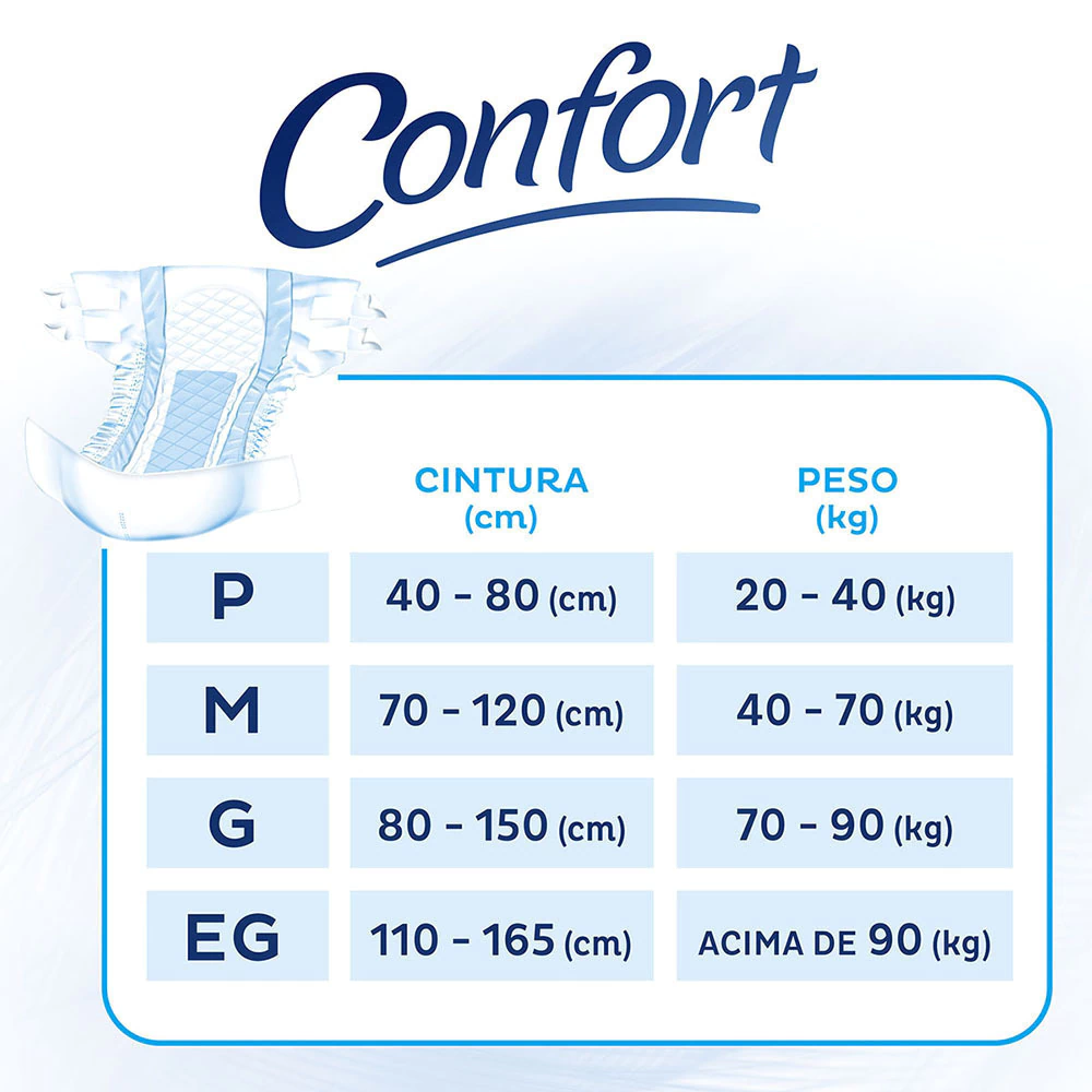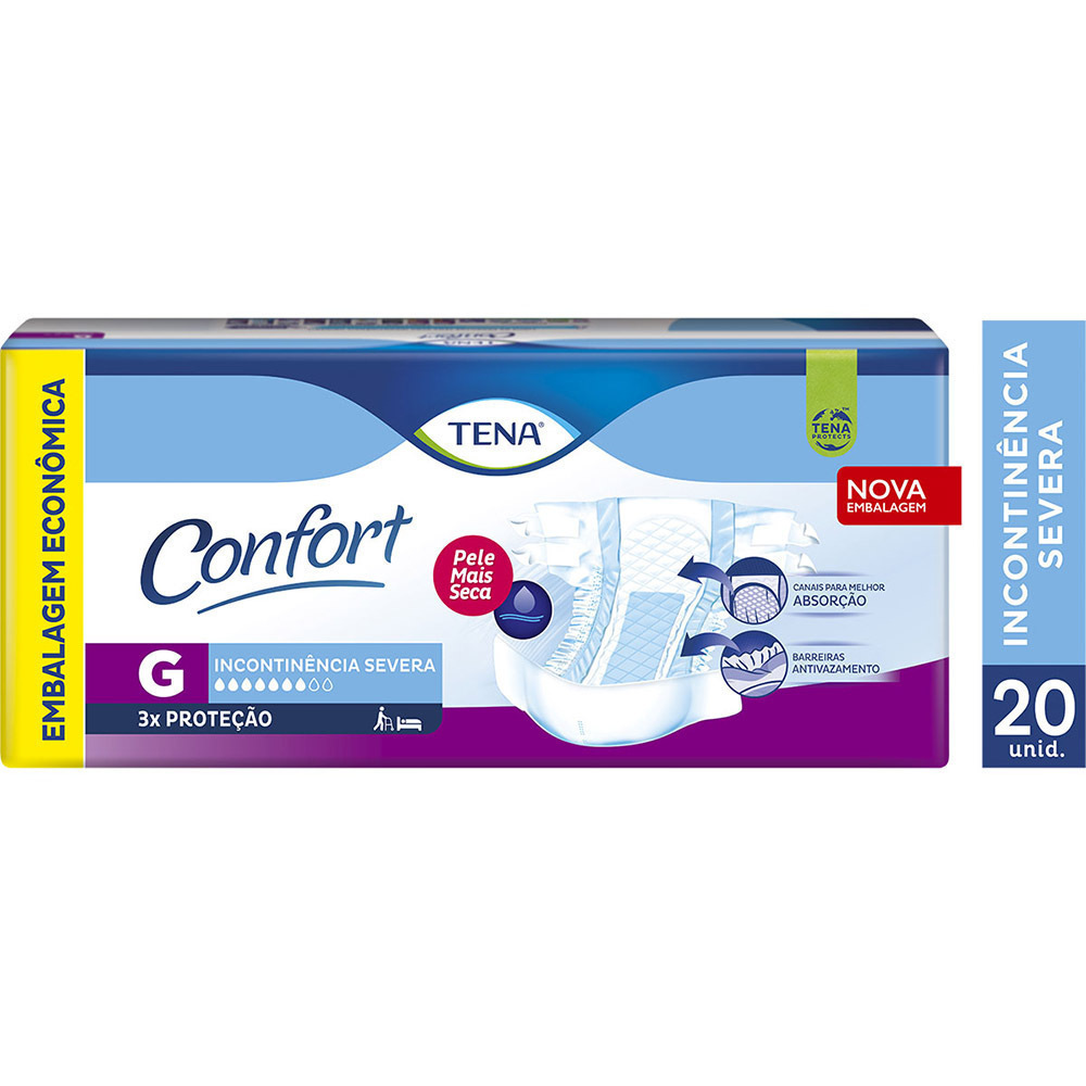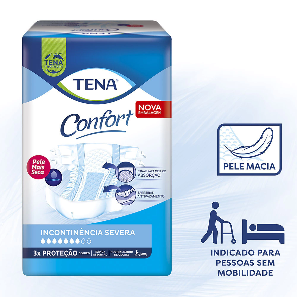Fralda Geriátrica Descartável TENA Confort de uso diurno/noturno, desenvolvida para garantir proteção com muito conforto, segurança contra vazamentos e cuidado com a pele.