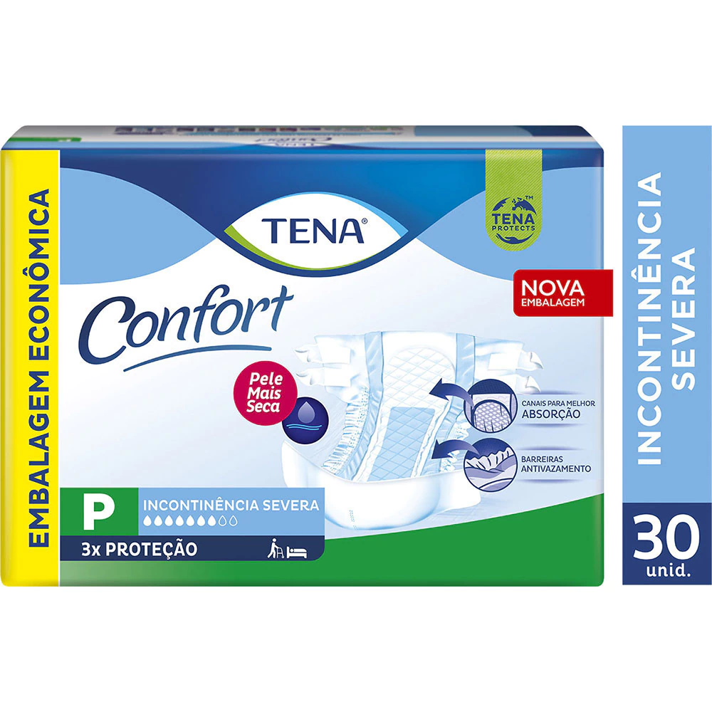 Fralda Geriátrica Descartável TENA Confort de uso diurno/noturno, desenvolvida para garantir proteção com muito conforto, segurança contra vazamentos e cuidado com a pele.