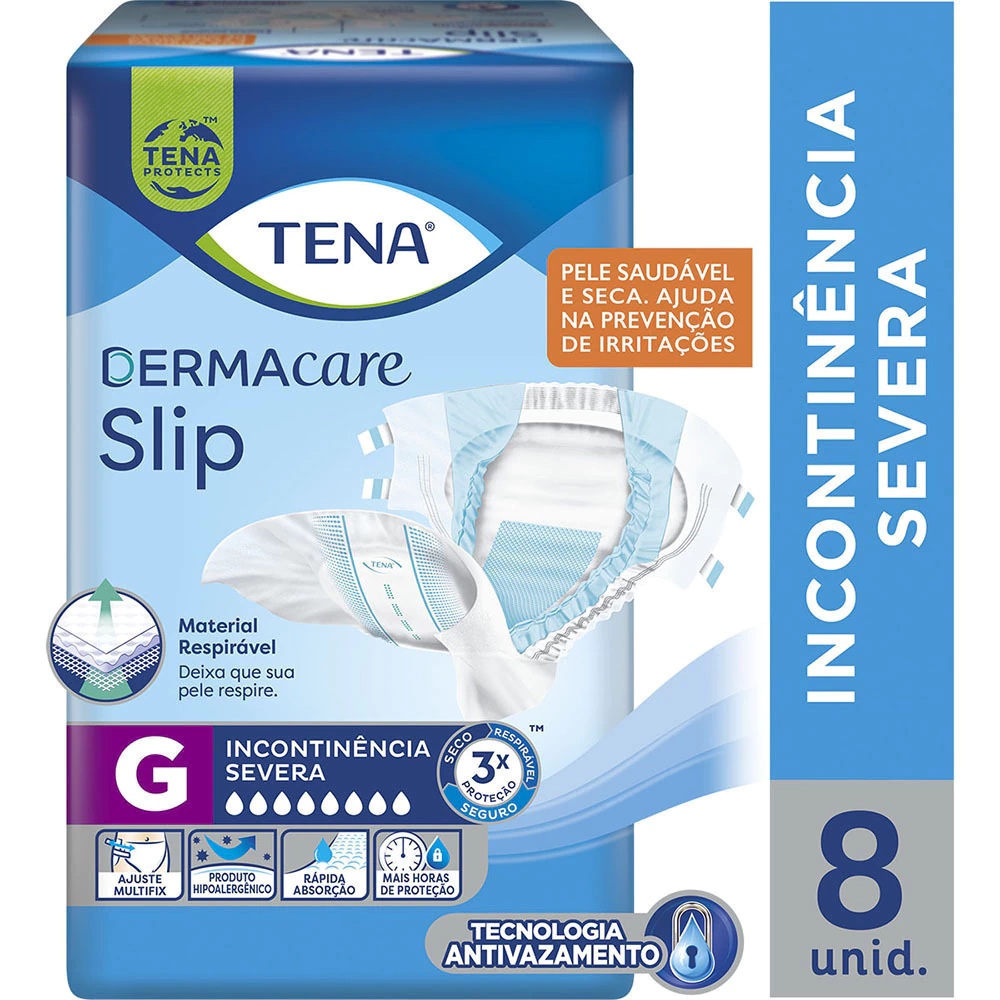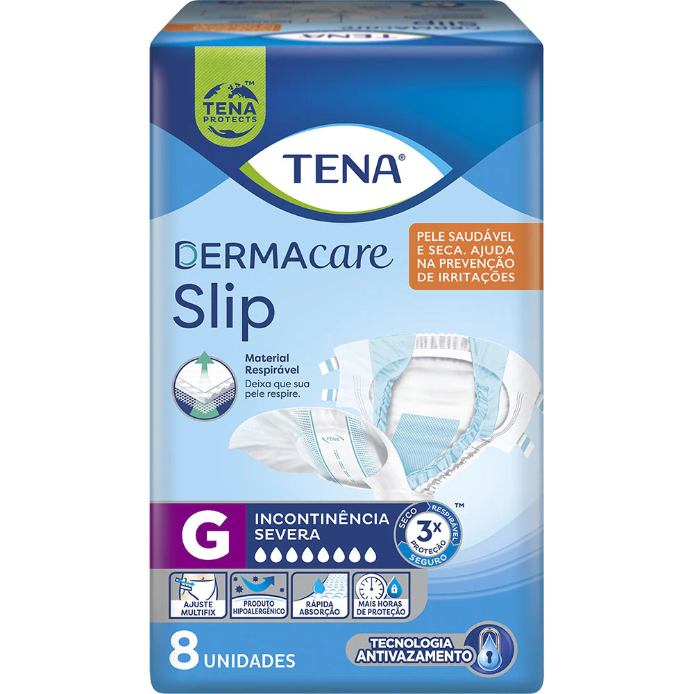 Fralda TENA Dermacare possui dupla camada e um núcleo de alta absorção que rapidamente retém a urina promovendo segurança em um produto hipoalergênico. Com tecido macio e respirável que permite a respiração da pele, mantém a mesma sempre seca e saudável, ajudando a prevenir irritações. Possui tecnologia antivazamento com barreiras protetoras, elásticos nas costas e controle antiodor. Indicada para incontinência urinária e fecal em usuários com pouca ou nenhuma mobilidade.
