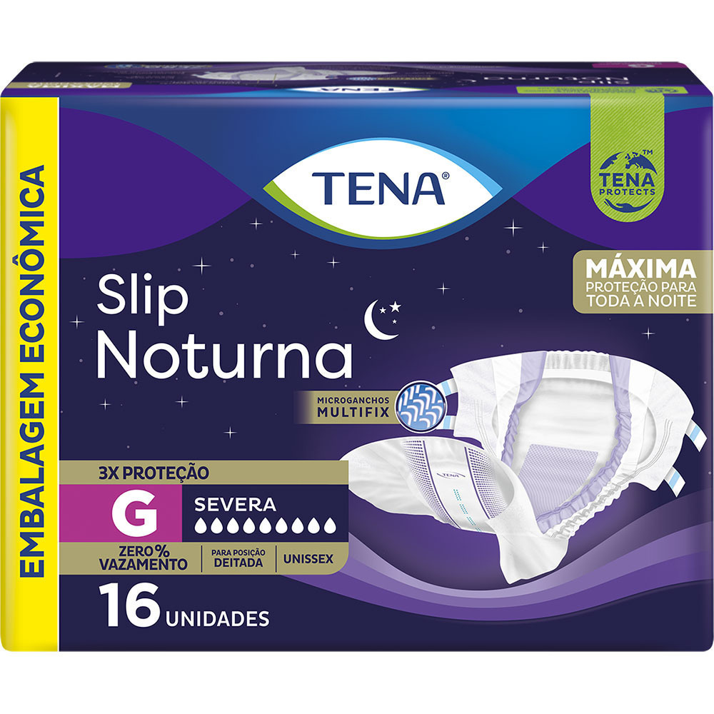 Fralda Geriátrica Descartável TENA Noturna é uma fralda unissex para usuários com pouca ou nenhuma mobilidade (acamados), indicada para incontinência severa. Proporciona máxima proteção durante toda a noite.