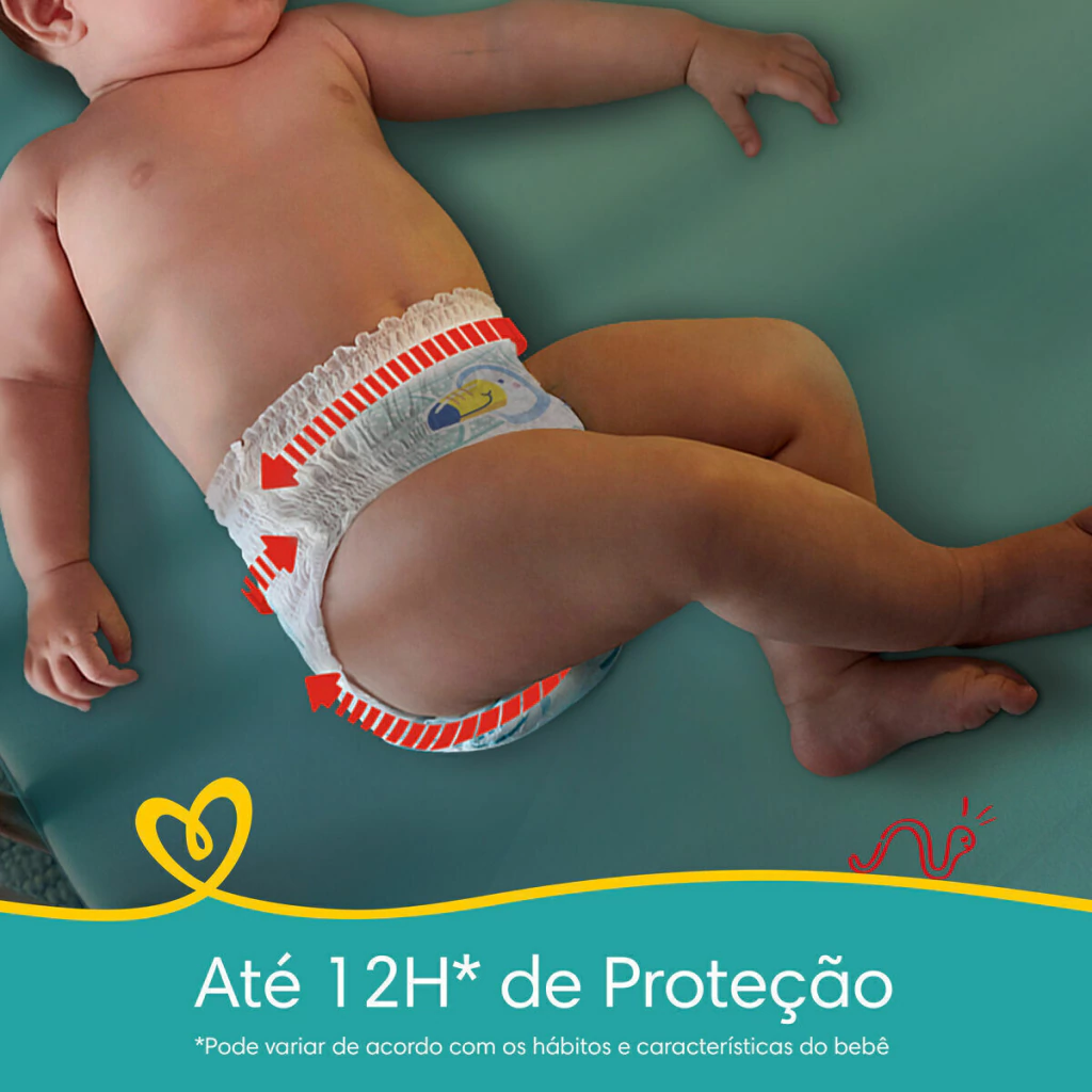 o O jeito fácil de trocar o Fácil de pôr o Cintura elástica 360° que se adapta ao corpinho do seu bebê e agora com sistema de Ajuste Inteligente o Fácil de tirar rasgue suas laterais e retire-a normalmente o Canais de ar que evitam que a fralda fique caída o Até 12 horas* de proteção para noites inteiras de sono sequinho o *Pode variar de acordo com os hábitos e características do bebê