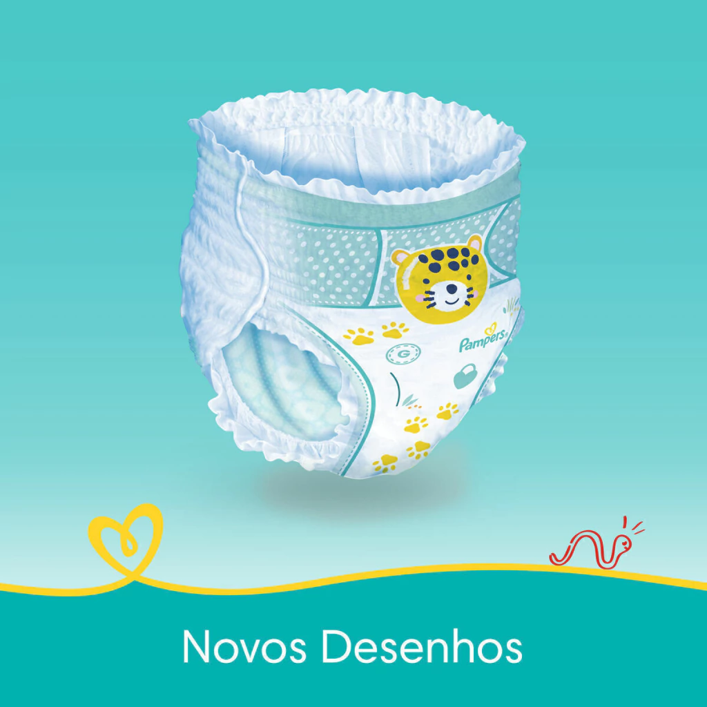 A fralda calça Pamper Pants Ajuste Total é fácil de trocar até quando o bebê está em movimento. Com cintura elástica 360° se adapta ao corpinho do bebê. A fralda pants ajuste total possui canais de ar que permitem que o ar circule livremente pela fralda, para que o bumbum fique menos abafado e a pele fique arejada e sequinha durante a noite. Pampers Pants Ajuste Total também possui gel mágico que absorve e retém a umidade no interior da fralda com uma camada ultra absorvente.A fralda calça Pampers Pants Ajuste Total é muito fácil de pôr e tirar basta seguir o modo de uso:1. Coloque a mão dentro da fralda;2. Suba a fralda como um shortinho através dos elásticos adaptáveis;3. Para retirar a fralda rasgue suas laterais e retire-a normalmente;4. Enrole e feche a fralda com a fita adesiva da parte de trás.