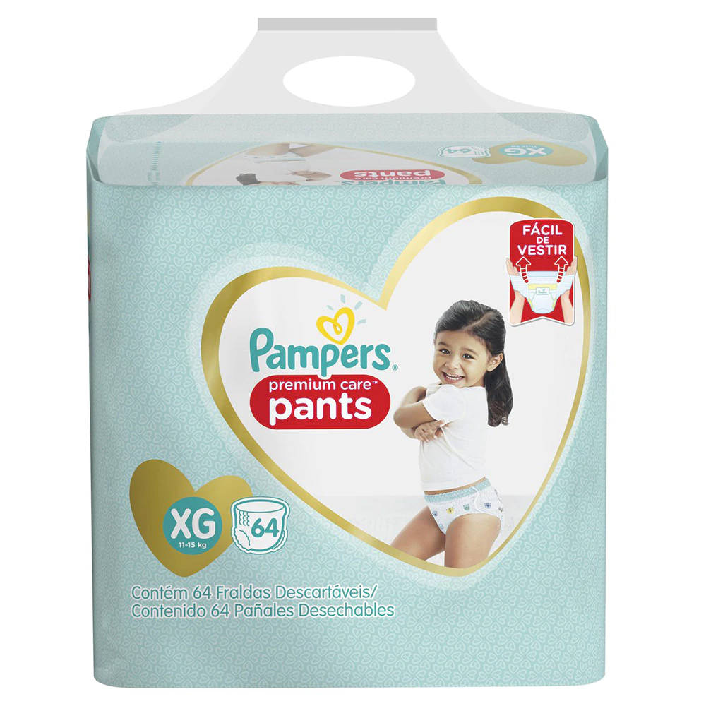 Fralda Pampers Pants Premium Care Jumbo XG com 64un