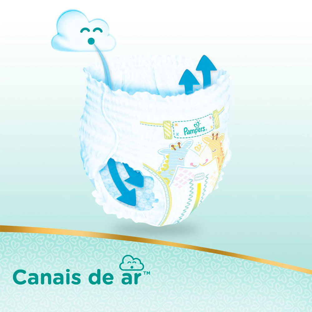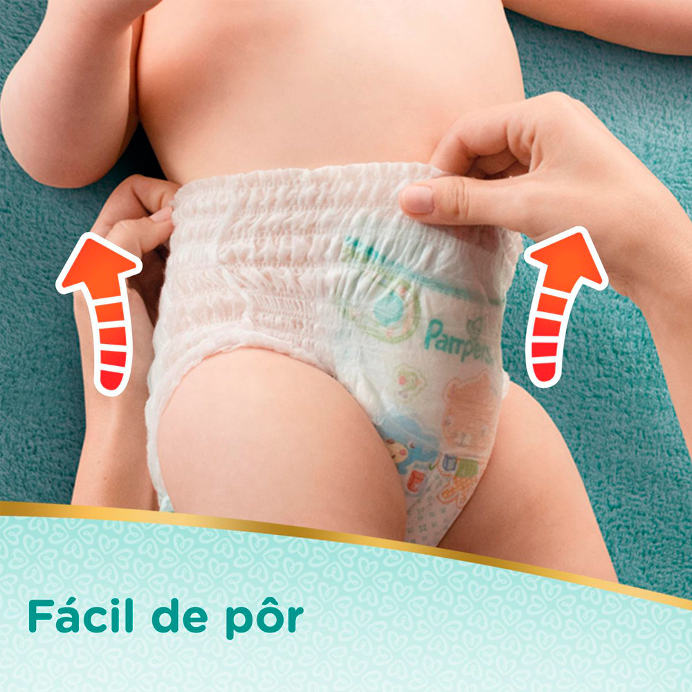 Experimente a nova Pampers Premium Care Pants! Com cintura elástica 360° é fácil de pôr mesmo quando eles estão em movimento, e mantendo sua pele seca e protegida.