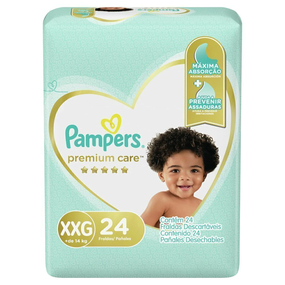 Pampers Premium Care , nossa proteção mais suave para a sua pele. É suave como o algodão° e ultra respirável. Também tem canais de ar para uma pele seca e arejada, e uma loção hipoalergênica exclusiva que ajuda a prevenir irritações. Experimente o Pampers Premium Care, a escolha número 1 de pediatras *. ->A escolha N°1 de pediatras* Nossa proteção mais suave para sua pele ->Suave como algodão°: a proteção mais suave da Pampers ->Canais de Ar: para uma pele arejada e sequinha ->Loção hipoalergênica exclusiva: ajuda a prevenir irritações ->Incrível sistema de absorção que oferece até 12 horas de sono sequinho** ->Ajuste cômodo e flexível: esticam e se ajustam aos movimentos do seu bebê ->Barreiras anti-derrames *Pesquisa realizada em setembro de 2017 para 221 pediatras em Argentina, Brasil e Chile sobre a marca de fraldas que eles escolhem para seus filhos °Não contém fibras de algodão **Pode variar de acordo com os hábitos e características do bebê Modo de Usar: Coloque o bebê sobre a fralda, desgrude as fitas e puxe-as, grude as fitas sobre a faixa decorada. Peso Indicado:+ 15 Kg Composição: Celulose, Polímero Superabsorvente, Polietileno, Polipropileno, Poliéster, Adesivos, Elásticos, Fragrância, Petrolato, Álcool Estearílico E Extrato De Aloe Barbadensis.