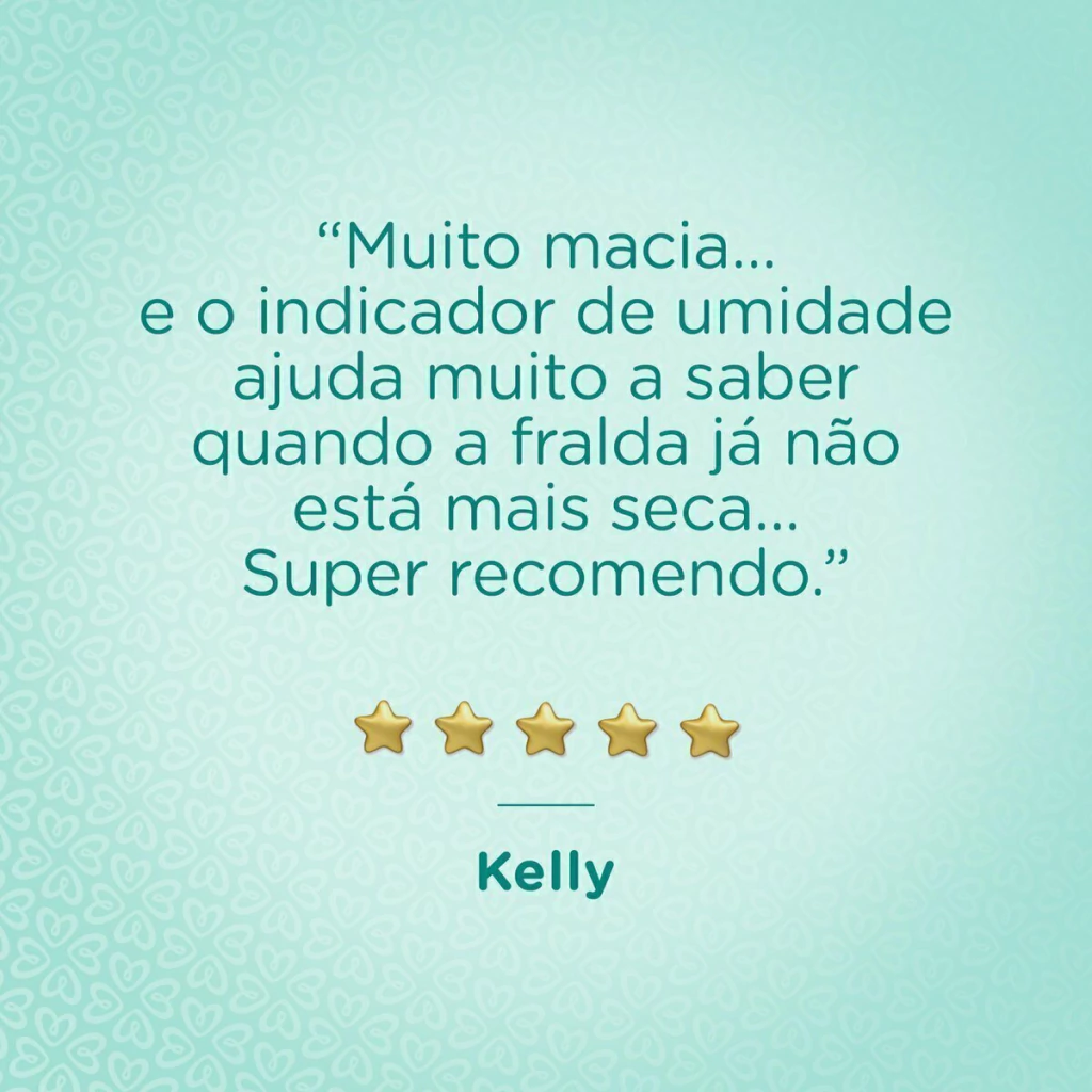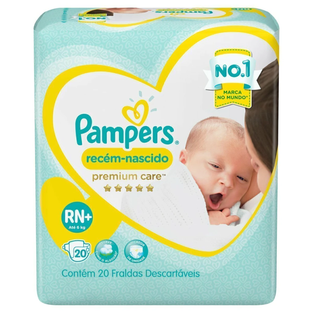 Pampers Recém-Nascido Premium Care, nossa proteção mais suave para sua pele. Tem uma Malha Algodão-Sec° exclusiva, que afasta o cocô líquido da pele do seu bebê, e também possui um indicador de umidade que te ajuda a saber a hora certa de trocar.