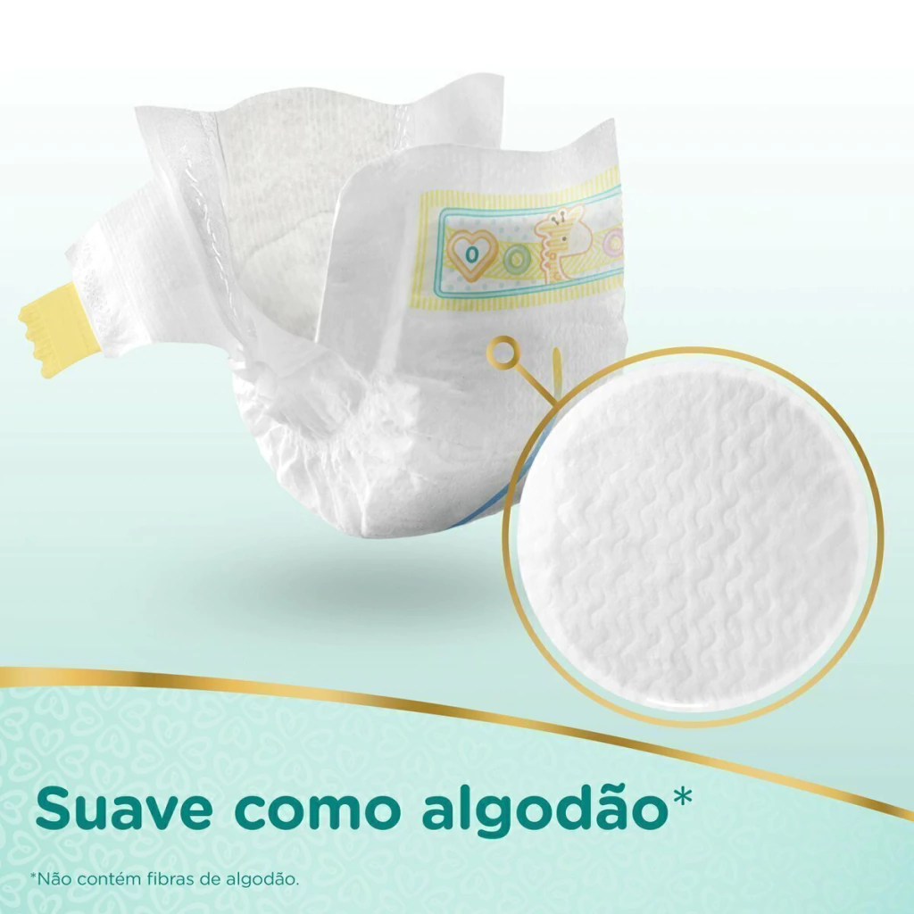 o Suave como algodão°: a proteção mais suave da Pampers °Não contém fibras de algodão