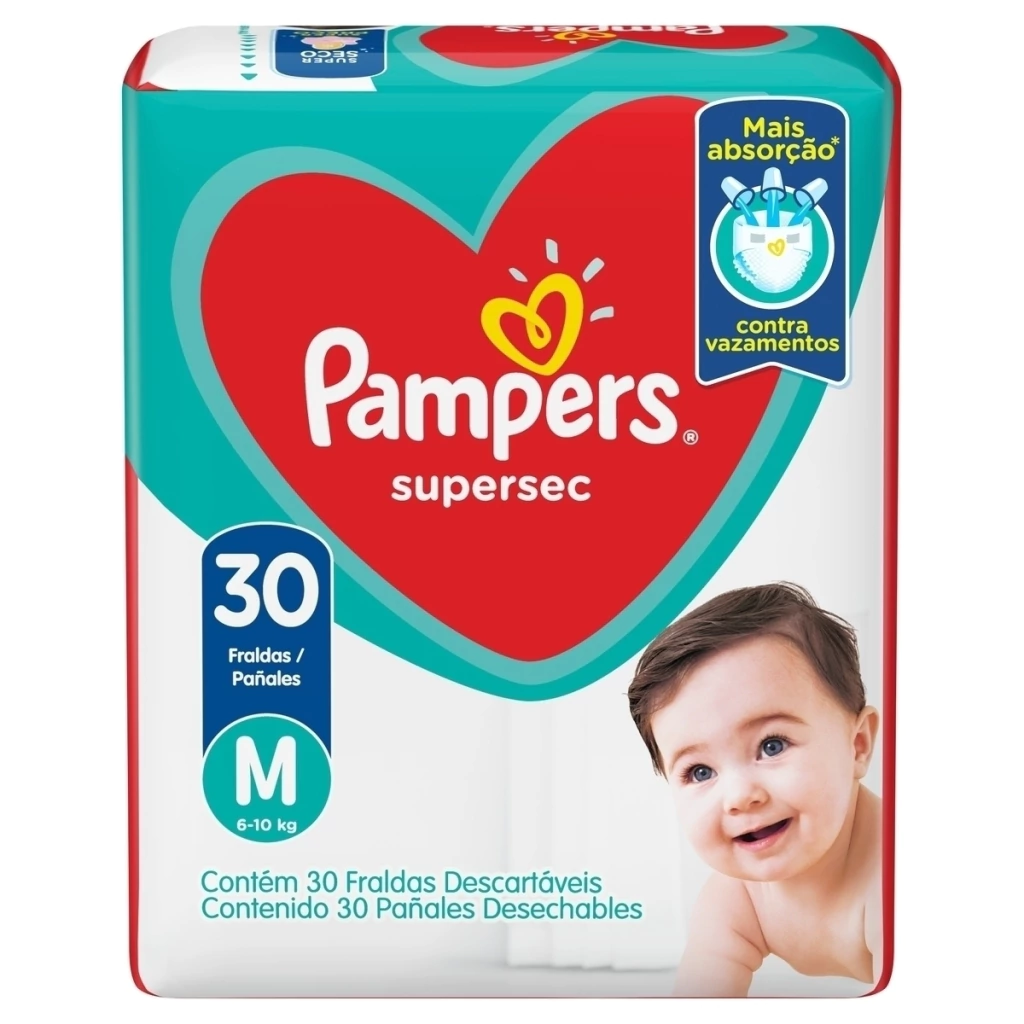 1 Pampers Supersec mantém seu bebê mais seco do que outras fraldas* por 1 noite inteira, porque somente Pampers Supersec tem canais extra-absorventes exclusivos, que distribuem o xixi uniformemente e impedem que ele entre em contato com a pele do seu bebê. Então, você muda menos e economiza mais.