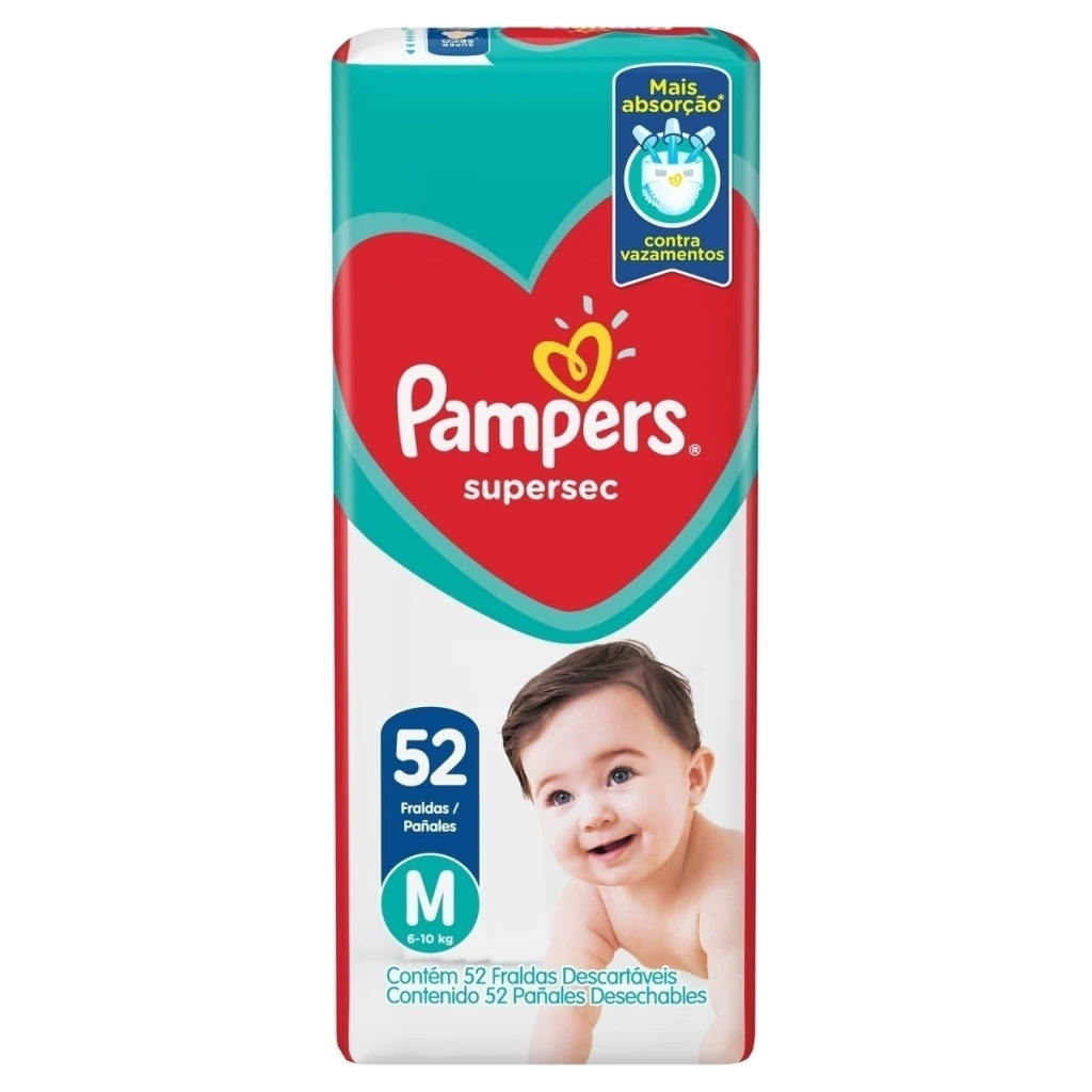 Pampers Supersec mantém seu bebê mais seco do que outras fraldas* por 1 noite inteira, porque somente Pampers Supersec tem canais extra-absorventes exclusivos, que distribuem o xixi uniformemente e impedem que ele entre em contato com a pele do seu bebê. Então, você muda menos e economiza mais.
