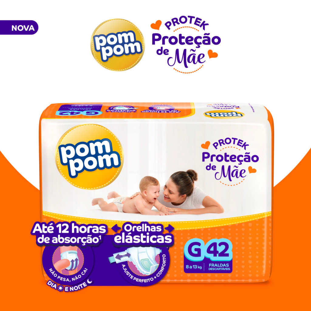Fralda Pom Pom Derma Protek Proteção de Mãe Mega G com 42un