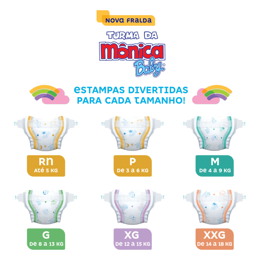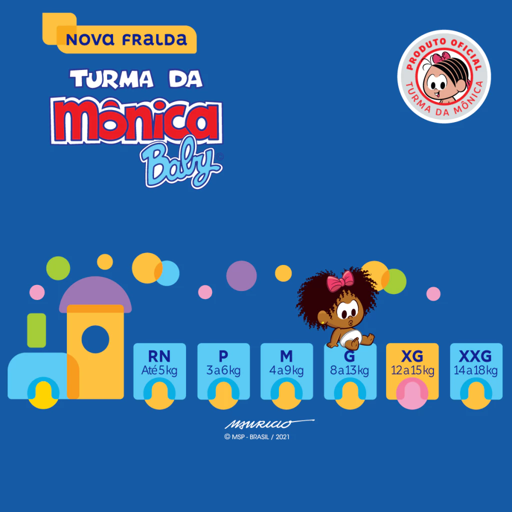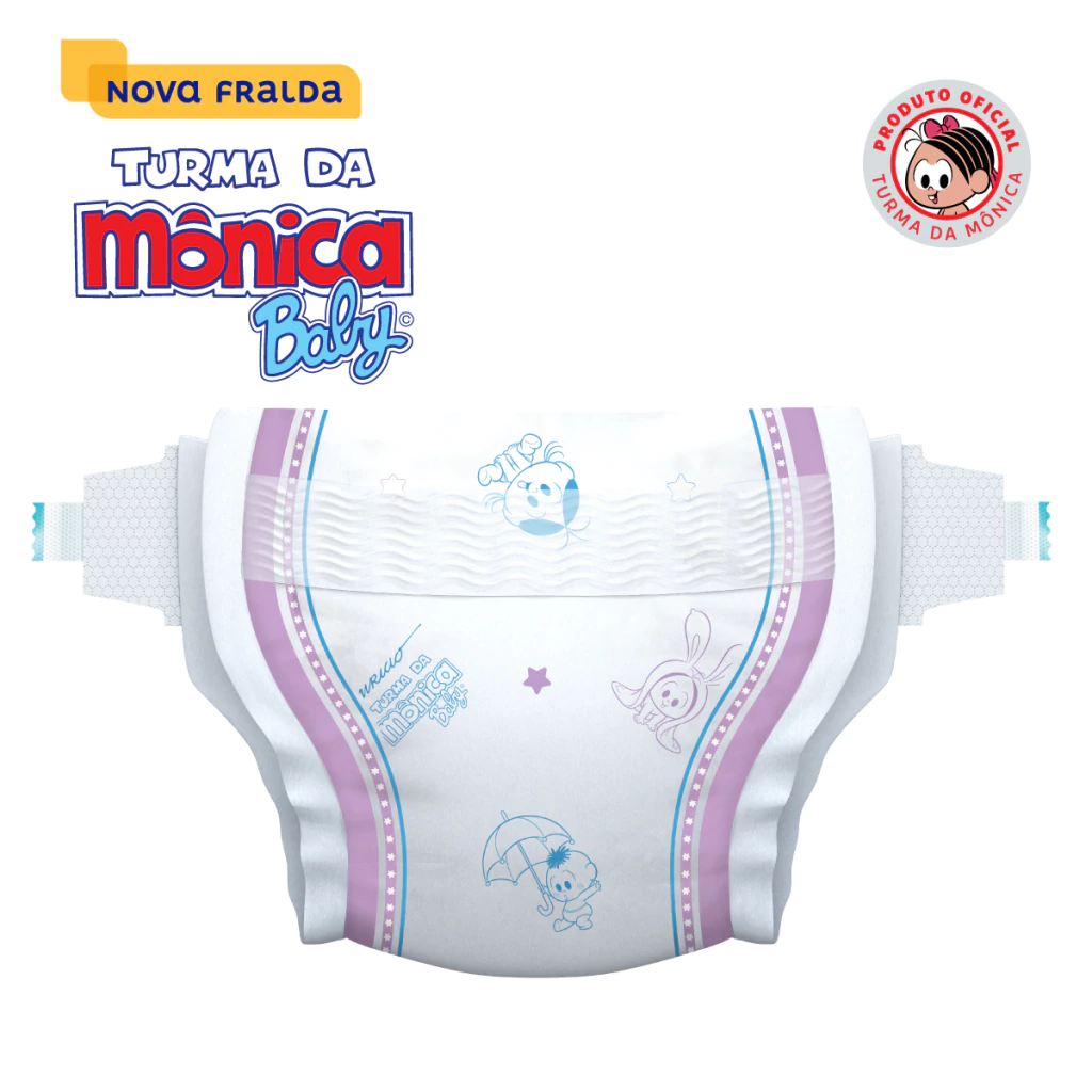 A Turma da Mônica Baby uniu proteção e conforto em uma nova opção de fralda, para garantir que seu bebê cresça feliz e tenha as melhores lembranças da sua infância. A Nova fralda Turma da Mônica Baby possui a nova Tecnologia QuatroSec para que ele fique calmo, tranquilo e seguro durante o dia e a noite toda. Conta com um exclusivo sistema de canais que distribui mais rápido o xixi, barreiras anti-vazamento e uma fina camada extra que ajuda a manter o bebê sequinho por até 12 horas, além de cintura elástica que proporciona um perfeito ajuste no corpinho.