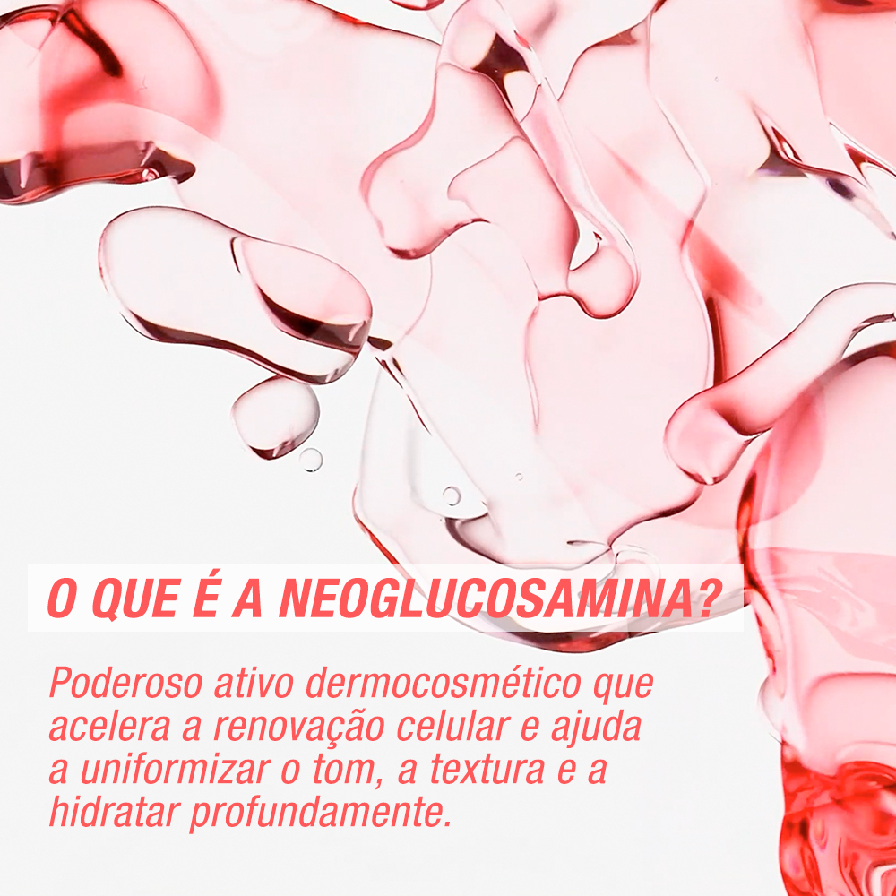 -Neoglucosamina: Acelera a renovação celular, uniformiza o tom e a textura da pele, além de hidratar profundamente.