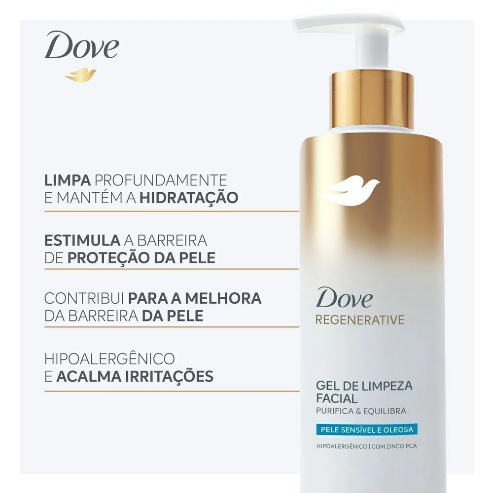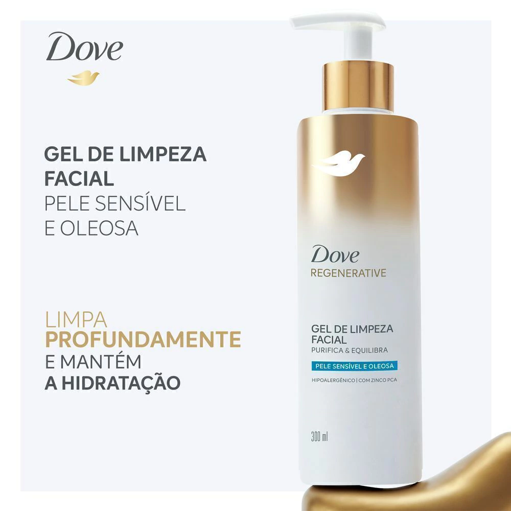 o O Gel de Limpeza Facial Dove Purifica e Equilibra limpa profundamente a pele e mantém a hidratação