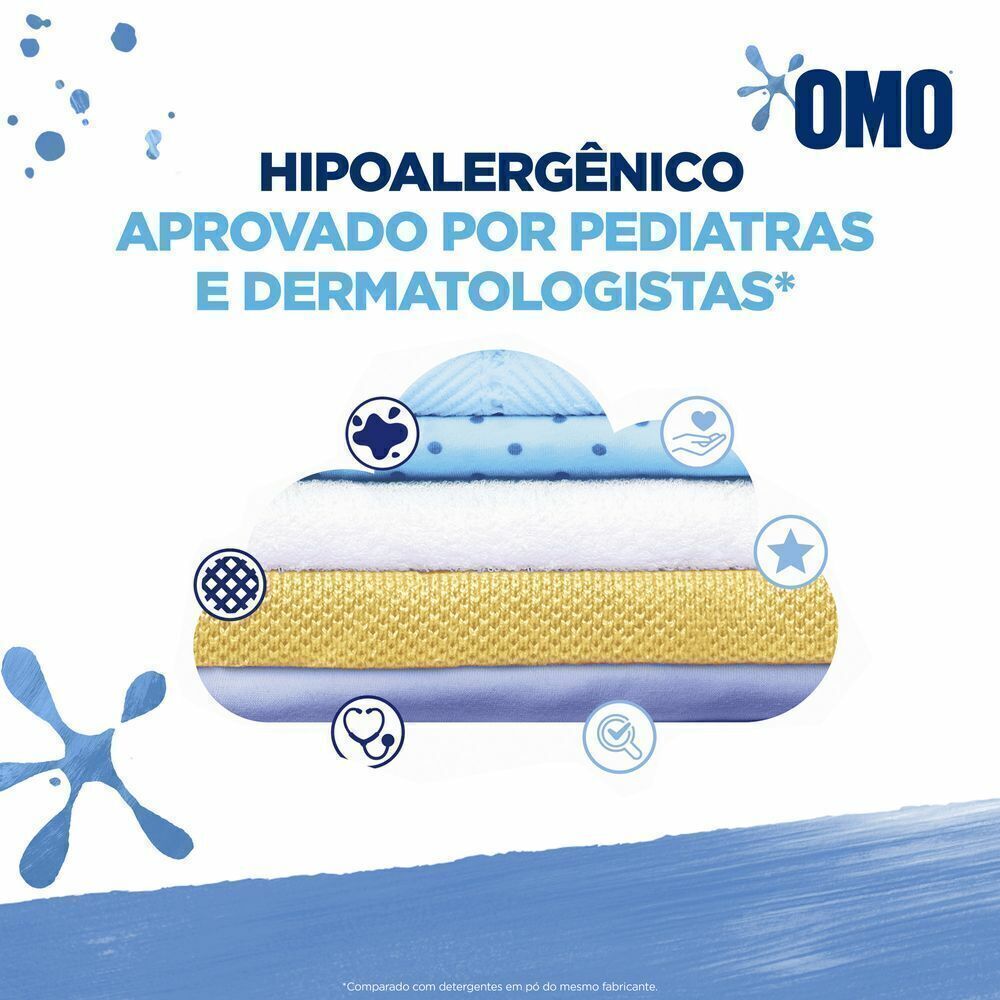 O Sabão em Pó OMO Puro Cuidado foi especialmente formulado para cuidar das roupas sem agredir as peles mais delicadas**. Avaliada por pediatras, sua fórmula é hipoalergênica e extra suave, respeita as peles mais delicadas enquanto combate as manchas mais profundas. É perfeito para lavar as roupinhas do seu bebê. O lava roupas OMO Puro Cuidado é imbatível nas manchas da introdução alimentar* e cuida do meio ambiente, pois sua fórmula contém ingredientes biodegradáveis e não possui fosfato, ajudando a preservar rios e oceanos, além de economizar água, uma vez que precisa de apenas 1 enxágue. Além disso, possui ativo concentrado, tecnologia que cuida do planeta. Menos CO², menos poluição. Por isso, apenas meia xícara lava uma máquina cheia. Faça o descarte consciente. Quando você escolhe OMO, você escolhe um mundo melhor. Juntos, sOMOs a transformação positiva para o meio ambiente. Seu uso é recomendado por Brastemp e Consul. Mantenha o produto fora do alcance de crianças e dos animais domésticos. Leia o rótulo antes de usar o produto.