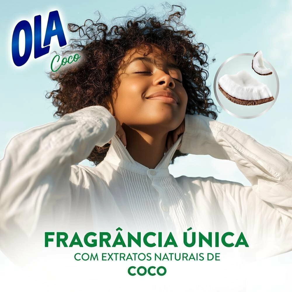 A lavagem de roupas é uma tarefa doméstica comum na vida de todos. É preciso muita organização, cuidados com cada tipo de tecido e cor de roupa, conhecimento sobre quais produtos são importantes de serem usados. O Lava Roupas OLA é a sua escolha perfeita para o cuidado das suas roupas favoritas, com sua fórmula balanceada que não agride os tecidos finos e delicados, conservando-os como novos por muito mais tempo. Guardando e preservando momentos queridos, garantindo roupas limpas, macias e perfumadas. Agora com fragrância coco, ideal para roupas claras. Benefícios para você:Protege 20% mais contra o desbotamento dos tecidos para manter suas roupas como novas.Possui fórmula balanceada que não agride os tecidos conservando-os como novos por muito mais tempo.