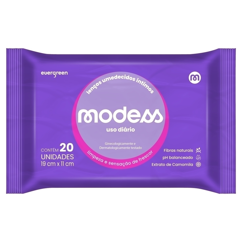Os produtos são válidos por 2 (dois) anos após data de fabricação se mantidos fechados em locaissecos.Todos os componentes são atóxicos em contato com a pele.PROPRIEDADES ESPECÍFICAS DOS PRODUTOSo Elaborado com ingredientes que mantém o pH da região íntima, deixando - a protegida,proporcionando limpeza e conforto. Lenços Umedecidos Íntimos Modess é higiene a qualquer horae lugar. Dermatologicamente testado.