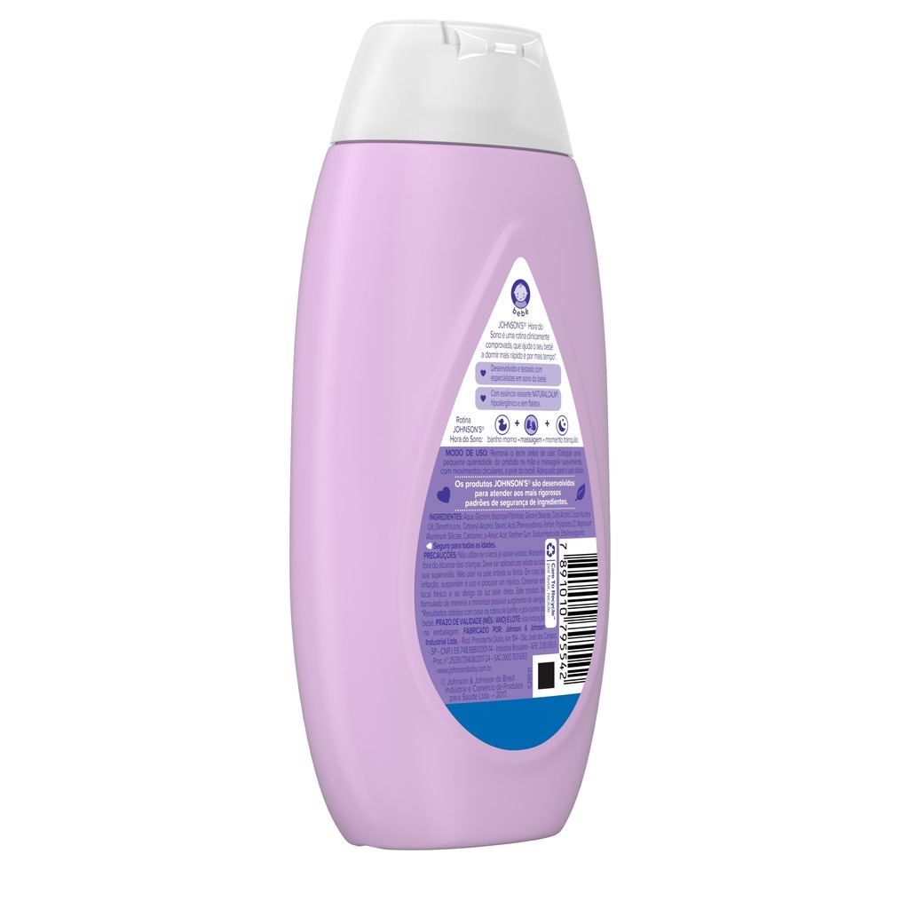 A Loção Hidratante Relaxante Para Uso Diário JOHNSON'S® Baby Hora Do Sono, 200mL proporciona uma agradável sensação de relaxamento e ajuda o bebê a dormir melhor e por mais tempo¹ em apenas 7 dias, devido a sua exclusiva essência relaxante NATURALCALM®. Com um cheirinho suave, proporciona uma pele delicadamente perfumada. Use como parte da nossa rotina JOHNSON'S® Hora do Sono de 3 passos: banho morno, seguido de uma massagem relaxante e um momento tranquilo. A linha é hipoalergênica, livre de corantes (exceto sab. Barra), parabenos, sulfatos e ftalatos. Além disso, é testado por dermatologistas, hipoalergênico e seguro desde o primeiro dia de vida.