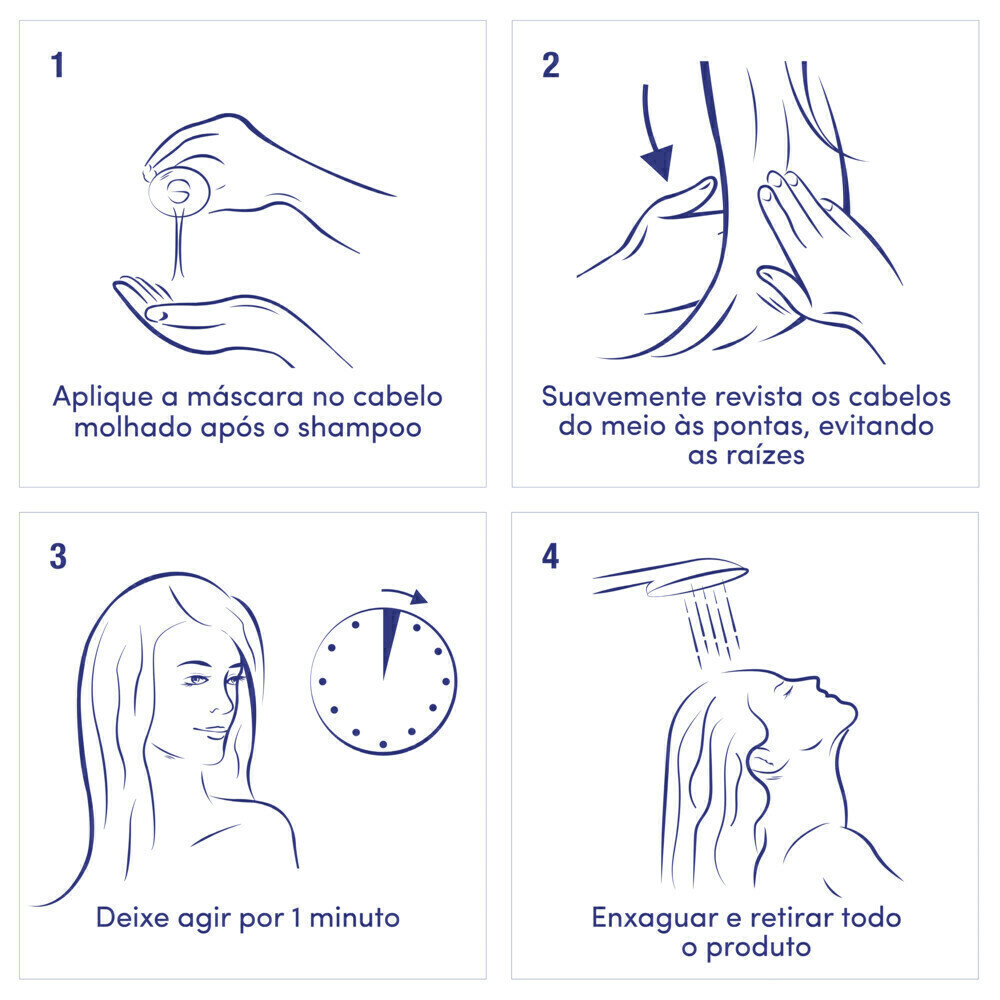 Para usar basta, logo após a lavagem, com o shampoo da linha Dove Ritual de Crescimento, retirar do pote a quantidade de máscara de tratamento suficiente para revestir os cabelos do meio às pontas. Enluve cuidadosamente as mechas e deixe agir por 1 minuto. Depois é só enxaguar e retirar todo o produto dos fios. Para finalizar e selar as cutículas, passe o condicionador Dove Ritual de Crescimento.