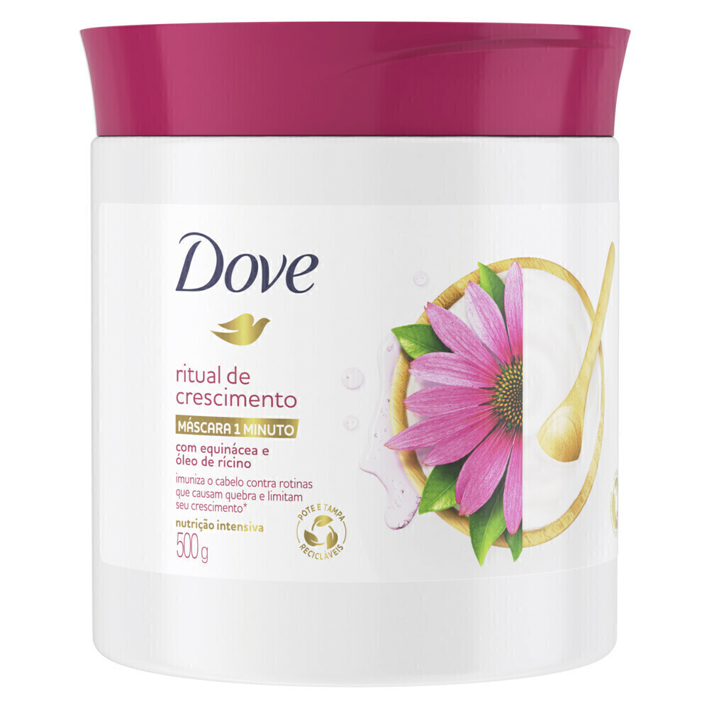 Com a nutrição avançada de Dove combinada com equinácea e óleo de rícino, a nova máscara de tratamento de Ritual de Crescimento Dove ajuda na restauração e crescimento saudável dos cabelos através de uma hidratação profunda. A equinácea é conhecida por ajudar no controle da queda de cabelo e na promoção do crescimento capilar. O óleo de rícino é conhecido por suas propriedades fortalecedoras, ajudando a deixar o cabelo resistente, brilhante e bonito.Este creme hidratante é ideal para ser usado em cronograma capilar.