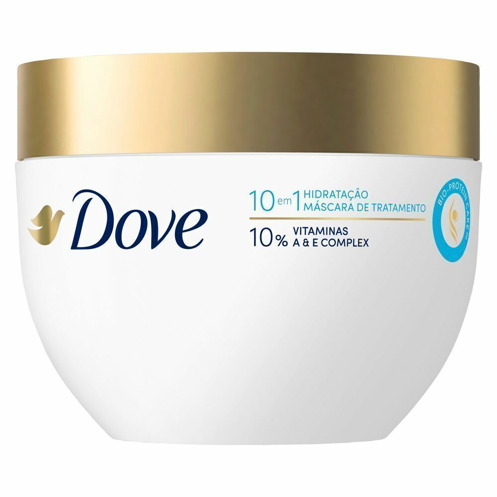 oA nova Máscara de Tratamento Dove 10 em 1 Hidratação 10% Vitaminas A & E Complex traz uma exclusiva tecnologia para um cuidado profundo dos cabelos desidratados oMáscara hidratante para reconstrução capilar de fios desidratados. Ajuda a reconstruir as fibras enquanto nutre profundamente seus cabelos oFórmula contém Bio-Protein Care com proteína 100% equivalente e compatível com a estrutura natural do seu cabelo e 10% Vitaminas A & E Complex, que dão mais força e nutrição aos seus fios oMáscara perfeita para fazer parte do seu cronograma capilar. Ajuda na reposição hídrica, preenche a fibra capilar, retém a hidratação e encorpa o cabelo oDepois de lavar, aplique este creme de cabelo generosamente em toda extensão dos fios até as pontas, evitando as raízes. Massageie. Deixe agir no mínimo por 1 minuto. Enxágue abundantemente oAdicione a Máscara de Tratamento Dove 10 em 1 Hidratação em seus produtos de cabelo para deixar o cabelo com mais movimento, hidratado e sem pesar Dove desenvolveu a Máscara de Tratamento Dove 10 em 1 Hidratação que faz parte da mais nova linha de hidratação, e possui uma exclusiva tecnologia para o cuidado profundo dos cabelos desidratados. A fórmula possui Bio-Protein Care com proteína 100% equivalente e compatível com a estrutura natural do seu cabelo, que penetra e atua em harmonia com a fibra capilar para combater 10 sinais de danos. Além de reparar danos, este creme hidratante possui a formulação com 10% Vitaminas A & E Complex, que dão mais força e nutrientes aos seus fios. Esta máscara capilar possui 10 benefícios em um só produto. São eles: 1. Hidratação profunda; 2. Reposição hídrica; 3. Preenche a fibra capilar; 4. Retém a hidratação; 5. Encorpa o cabelo; 6. Facilita o desembaraço; 7. Sem pesar; 8. Cabelo com movimento; 9. Macio ao toque; 10. Sensação não oleosa. Modo de usar: depois de lavar, aplique a máscara generosamente em toda extensão dos fios até as pontas, evitando as raízes. Massageie. Deixe agir no mínimo por 1 minuto. Enxágue abundantemente. Advertências: manter em lugar fresco, ao abrigo de luz intensa e fora do alcance de crianças. Não ingerir. Em caso acidental com os olhos, enxaguar abundantemente. Havendo irritação, suspenda o uso e procure orientação médica.
