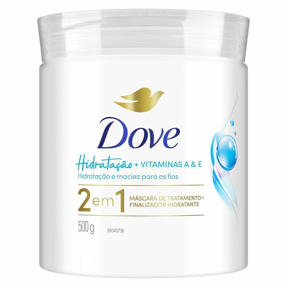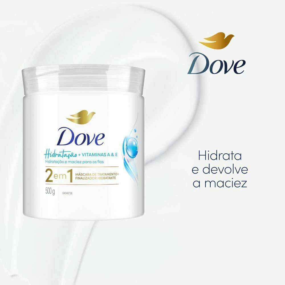 Dove apresenta a nova linha 2 em 1 de Creme Hidratante para cabelos mais hidratados, macios e brilhantes. São 3 variantes para cada etapa do cronograma capilar, sendo: Hidratação + Vitaminas, Reconstrução + Queratina e Nutrição + Fusão de Óleos. Cada máscara de tratamento possui diferentes papéis na rotina de cuidado do seu cabelo, unindo expertise contra danos, custo-benefício e praticidade. O novo Dove Hidratação + Vitaminas é o creme que hidrata e devolve a maciez dos fios, além de ser um finalizador hidratante que protege os fios deixando seus cabelos macios e brilhantes. Dove Hidratação + Vitaminas pode ser usado nos cabelos úmidos ou secos como um creme de hidratação finalizador sem a necessidade de enxágue ou também após o banho nos fios úmidos. É superfácil! Modo de uso com enxágue da Máscara de Tratamento: Depois de lavar aplique em toda extensão dos fios até as pontas evitando as raízes. Deixe agir no mínimo por 1 minuto e enxágue. Modo de uso sem enxágue do Finalizador Hidratante: Basta aplicar no cabelo úmido ou seco para fios nutridos. Dove acredita que beleza é para todos, e que seu cabelo tem papel fundamental na construção da sua autoestima e beleza real! Seu cabelo te representa e expressa quem você é, por isso é importante cuidar dele e de você mesmo. Você e seus cabelos fortes livres de danos! #SeuCabeloSuaEscolha. Dove é certificada Cruelty-Free pela PETA, sendo assim, não realizamos e nem realizaremos testes em animais em nenhum lugar do mundo.