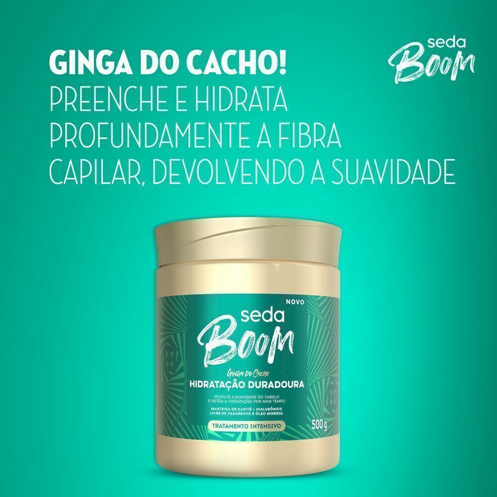 oA Máscara de Tratamento Seda Boom Hidratação Duradoura é o novo tratamento intensivo que devolve a suavidade do cabelo e retém a hidratação por mais tempo oA fórmula dessa máscara de tratamento é enriquecida com manteiga de karité e hialurônico, que combate os sinais de ressecamento dos fios e hidrata, preenchendo a fibra capilar oMáscara capilar que preenche e hidrata profundamente os fios, deixando-os suaves do comprimento às pontas oEsta máscara de tratamento intensivo Seda Boom possui uma textura super cremosa que protege e prepara o cabelo para uma melhor definição oEssa máscara de tratamento é ideal para cabelos cacheados ou ondulados e é livre de parabenos e óleo mineral oA Máscara de Tratamento Seda Boom Hidratação Duradoura deixa seu cabelo cacheado profundamente hidratado