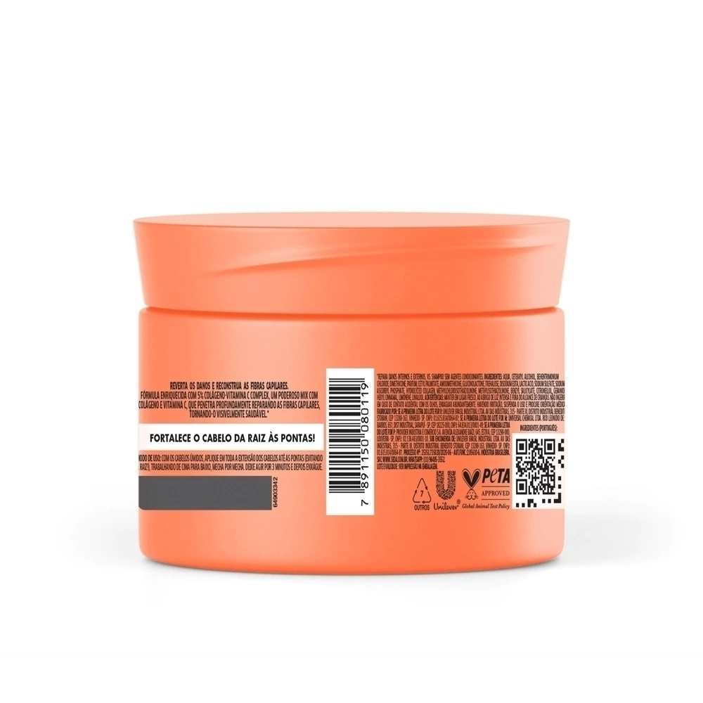 A Máscara de Tratamento Seda Colágeno + Vitamina C reverte os danos e reconstrói as fibras capilares. Sua fórmula é enriquecida com 5% COLÁGENO-VITAMINA C COMPLEX, um poderoso mix com Colágeno e Vitamina C, que penetra profundamente reparando as fibras capilares, fortalecendo o cabelo da raiz às pontas, tornando o cabelo visivelmente saudável*. Indicado para cabelos danificados e sem brilho.MODO DE USO: Com os cabelos úmidos, aplique em toda a extensão dos cabelos até as pontas (evitando a raiz!), trabalhando de cima para baixo, mecha por mecha. Deixe agir por 3 minutos e depois enxágue. *Repara danos interno e externo, com uso do shampoo e condicionador da linha vs shampoo sem agentes condicionantes."