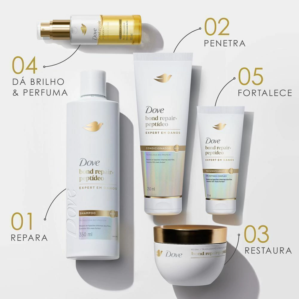 Indicado para todos os tipos de fios danificados, o óleo para cabelos danificados pode ser usado diariamente, antes ou depois da secagem, e reaplicado ao longo do dia. Para máxima performance, combine com shampoo, condicionador, máscara e leave-in Dove Bond Intense Repair + Peptídeo.