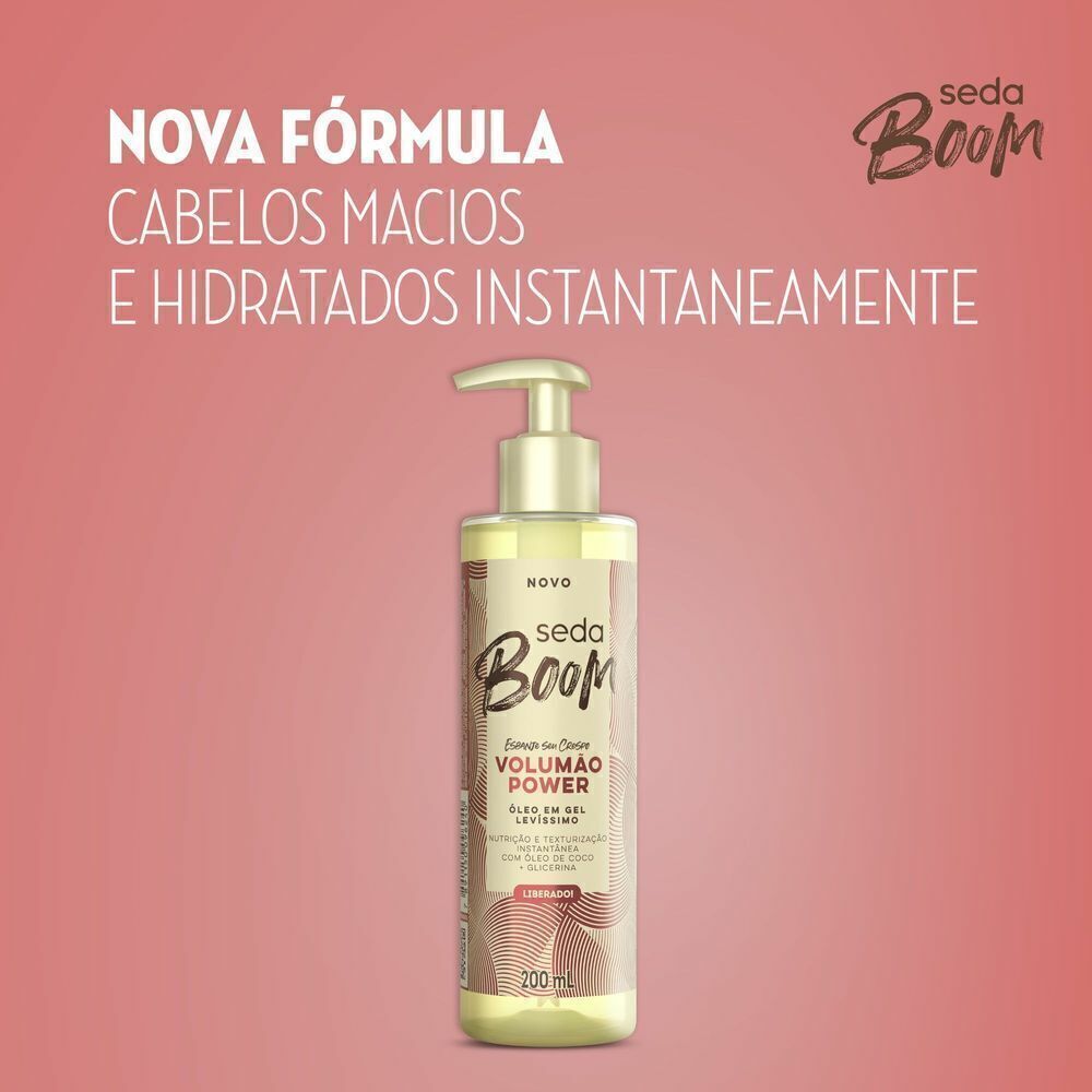 oO Óleo em Gel Seda Boom Volumão Power é o novo produto finalizador levíssimo que nutre em profundidade, adicionando definição e textura aos fios