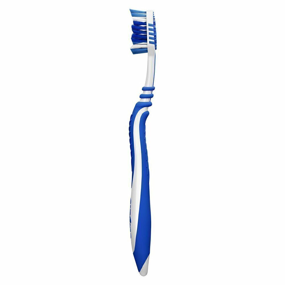 Limpador de língua que remove as bactérias causadoras do mau odor. Cerdas cruzadas multi-ângulo que limpam entre os dentes. Cerdas com ponta em relevo para remover a placa dos dentes posteriores. Remoção de bactérias superior* (*vs. escova regular sem limpador de lingua e bochechas). Cabeça flexível ajuda a reduzir a pressão nas gengivas.