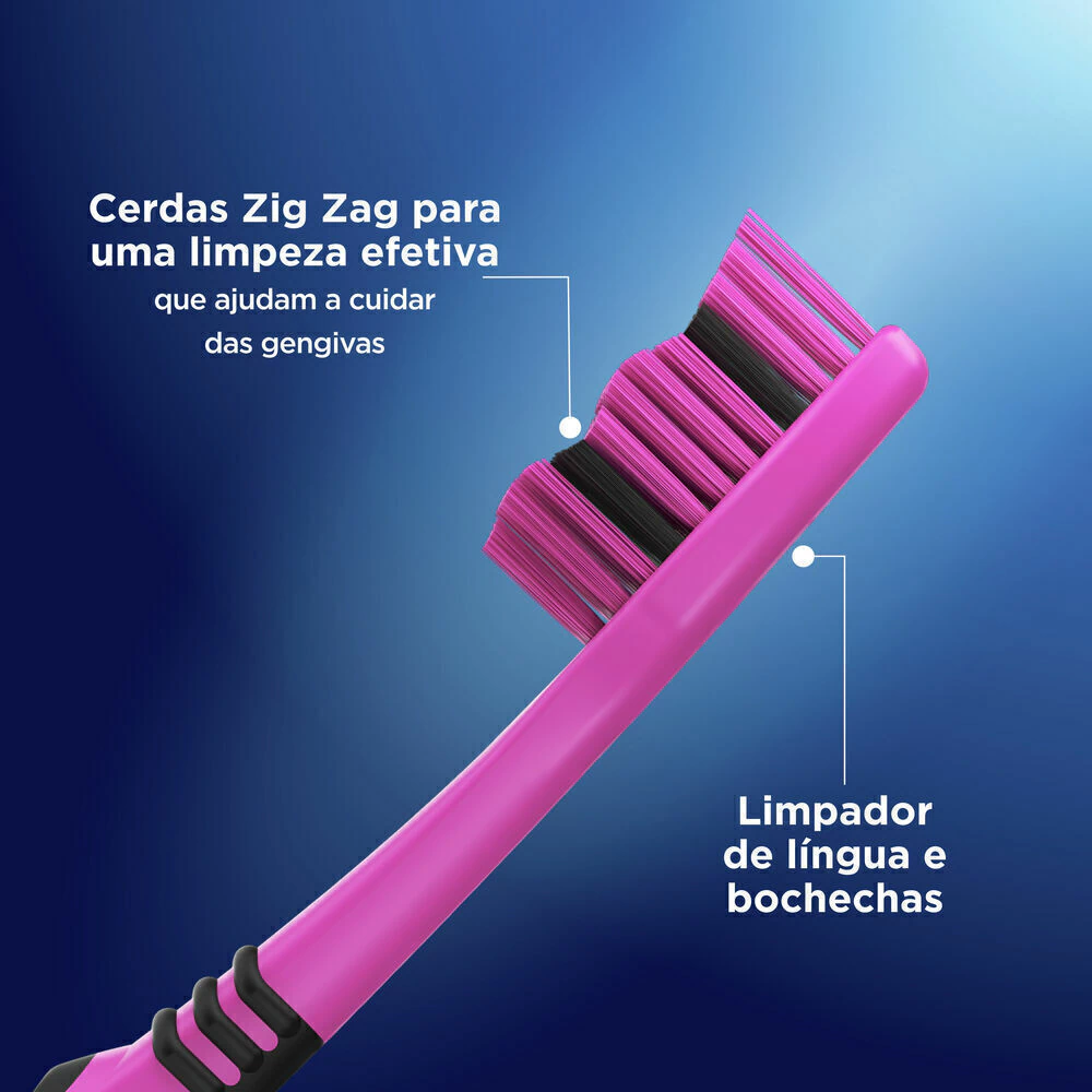 Escova Com Sistema De Cerdas Indicator®, Que Sinaliza O Momento Ideal Da Troca Da Escova E Possui Cabo Emborrachado Que Permite Maior Conforto Durante A Escovação. - Cerdas Indicator® - Cerdas De Pontas Arredondadas - Cabo Comfort Grip
