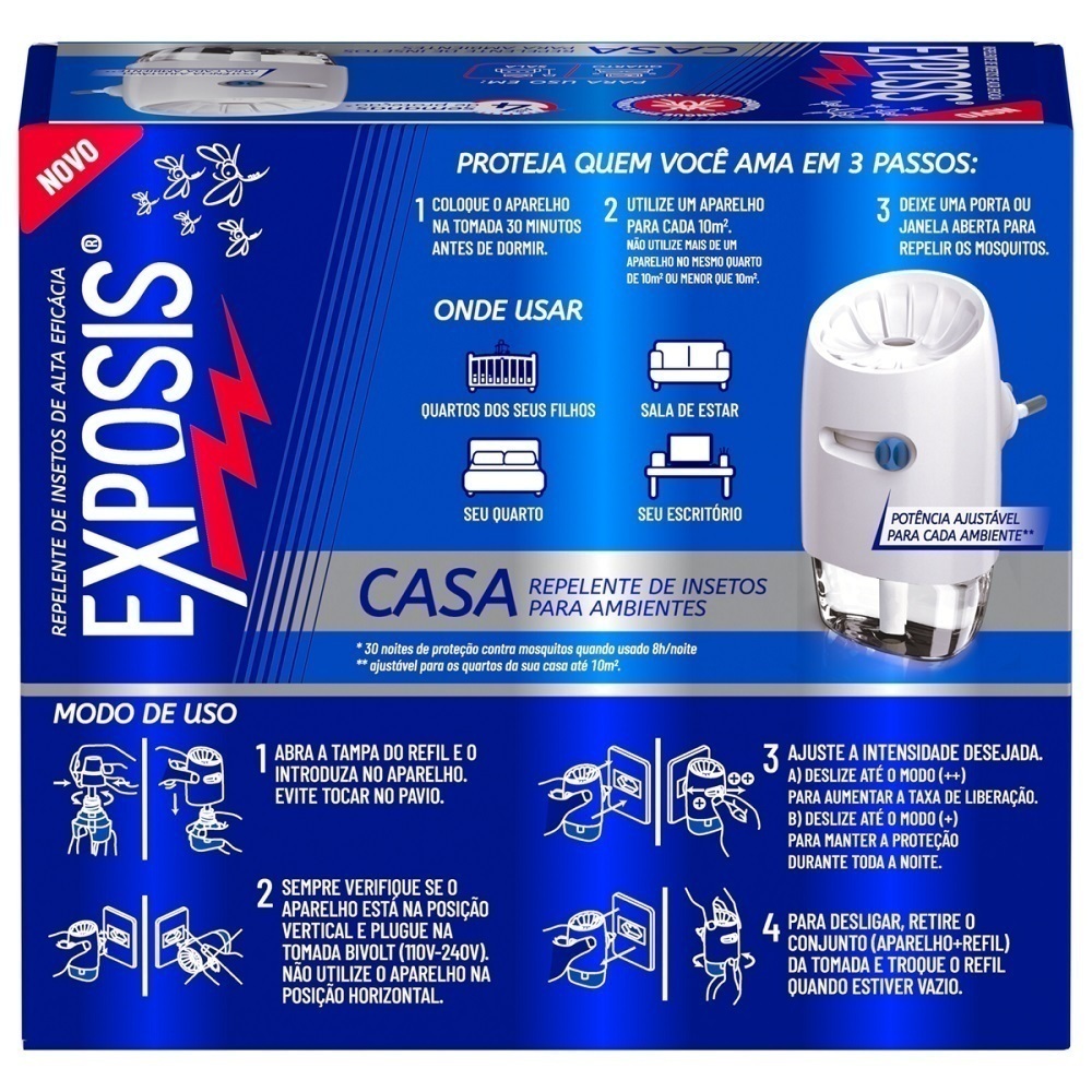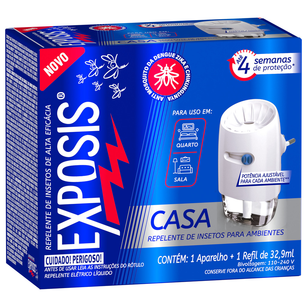 Exposis Casa é o repelente de insetos para ambientes da marca mais recomendada por médicos. Possui alta eficácia e é a solução ideal para proteger sua família contra mosquitos causadores de doença como Dengue, Zika e Chikungunya. Fornece até 4 semanas de proteção para sua casa.