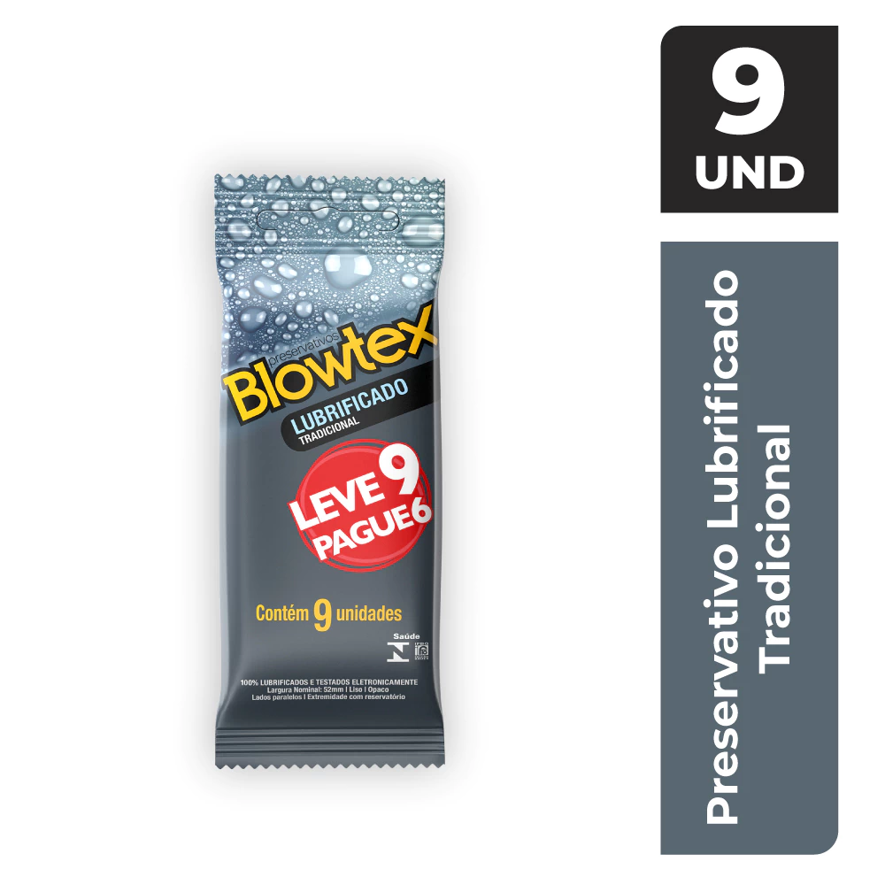 Preservativo Blowtex Lubrificante 9 Unidades O preservativo Blowtex lubrificado com 6 unidades é ideal para quem gosta de sentir prazer sem abrir mão da segurança. São 100% lubrificados e testados eletronicamente proporcionando segurança e confiança dos produtos Blowtex. Além de agir como contraceptivo. também é um método muito importante e eficiente na prevenção às doenças sexualmente transmissíveis.* Compre produtos Blowtex.