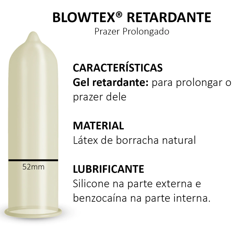 Os preservativos BLOWTEX® RETARDANTE destinam-se a recobrir o pênis ereto durante a relação sexual, auxiliando na prevenção de doenças sexualmente transmissíveis e no planejamento familiar.
