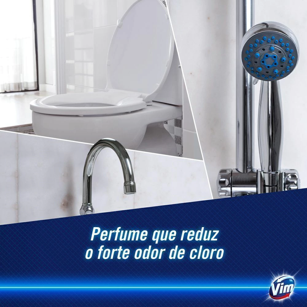 Sua fórmula única permite que ele desinfete até os lugares mais difíceis, incluindo vasos sanitários e banheiro, atingindo áreas que outros produtos não conseguem. Além de suas propriedades de limpeza profunda, o Desinfetante Vim Espuma Poderosa Original é também um material de limpeza de uso geral**, conhecido por seu perfume agradável, que reduz o forte odor de cloro das águas sanitárias, deixando um aroma suave após a limpeza. É ideal para uso diário, em todas as superfícies laváveis da casa, pois sua espuma adere até em superfícies verticais, proporcionando uma ação prolongada que mantém os locais limpos por mais tempo. A versatilidade do produto de limpeza Vim Espuma Poderosa também se destaca por sua aplicação ponta-cabeça, facilitando a limpeza em locais de difícil acesso e assegurando uma desinfecção completa. Este produto não apenas limpa, mas transforma o ato de limpeza em um cuidado mais eficiente e prático com o seu lar. *Microorganismos testados: Enterococcus hirae, Escherichia coli, Pseudomonas aeruginosa, Staphylococcus aureus, Salmonella choleraesuis. **Antes de usar, leia as instruções do rótulo. Cuidado! Irritante para os olhos, pele e mucosas. Conserve fora do alcance de crianças e dos animais domésticos.