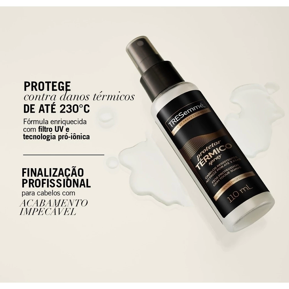 O Protetor Térmico Tresemmé Spray garante proteção térmica até 230ºC. Com textura mais leve e não oleosa, de aplicação do comprimento às pontas. Serve como reaplicação, dia seguinte ao uso do sistema de selagem completo. Pode ser usado com outras linhas. Borrife generosamente nos cabelos secos ou úmidos e penteie. Em seguida, finalize seu cabelo com calor, utilizando secador, chapinha ou outro tipo de procedimento a quente, como de costume."