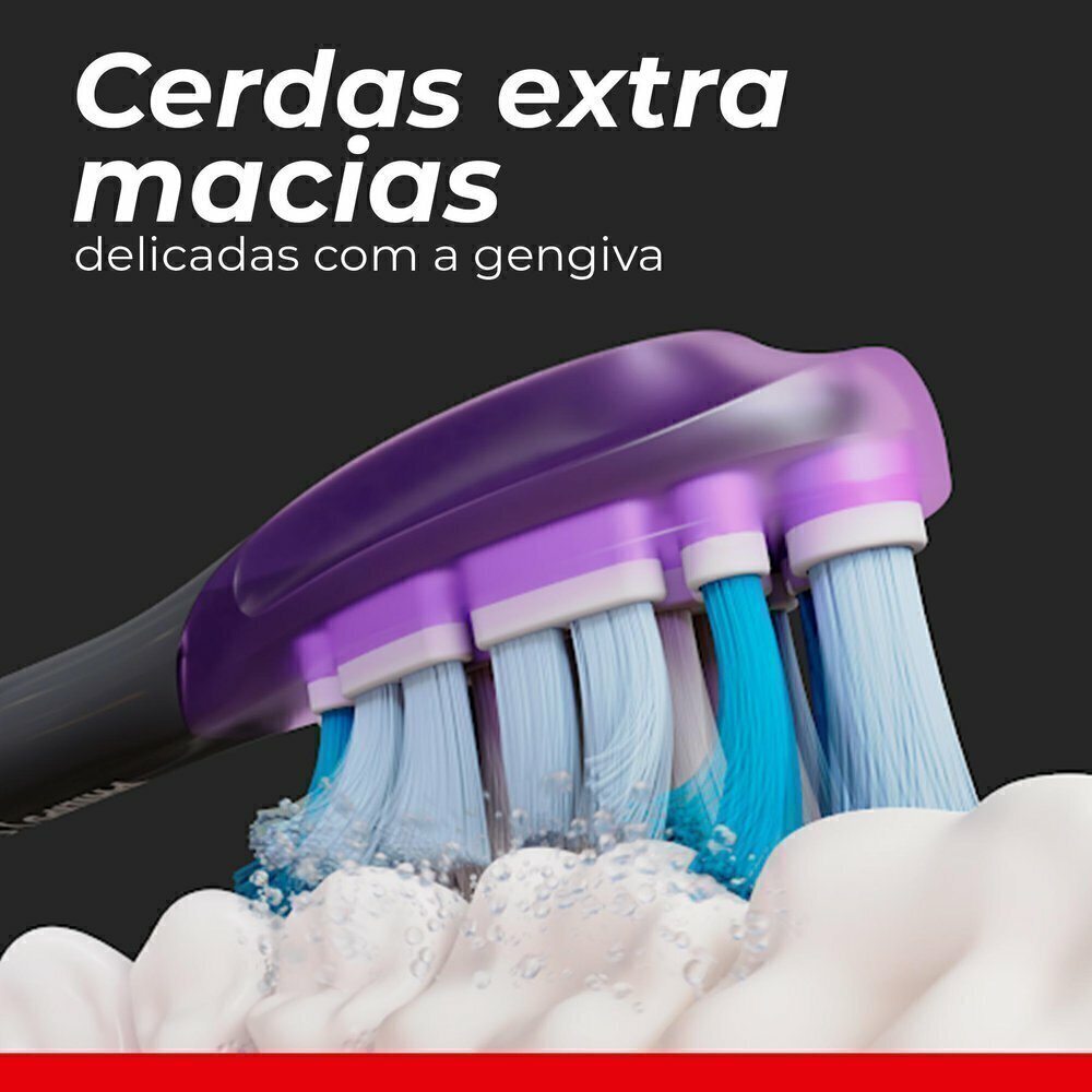 ?? Cerdas extra macias: elas são delicadas para a sua gengiva. Além disso, as laterais de borracha flexíveis absorvem a pressão exercida ao escovar os dentes, oferecendo cuidados extras para uma boa saúde bucal.
