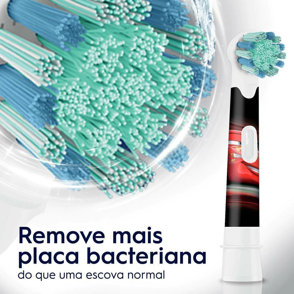 A Escova de Dentes Elétrica Oral-B Kids Pixar Cars para crianças maiores de 3 anos combina a diversão das Cars com a limpeza suave e eficaz de uma escova de dentes Oral-B. Especialmente projetada para crianças, esta escova limpa os dentes suavemente e remove mais placa bacteriana do que uma escova manual normal, protegendo a saúde do seu filho. Além disso, sua cabeça redonda possui cerdas extra macias que protegem a gengiva dos pequenos. A escova de dentes elétrica Oral-B Kids possui um cronômetro para que as crianças escovem os dentes por dois minutos, tempo de escovação recomendado pelos dentistas, que ajudará seu filho a desenvolver bons hábitos de escovação para toda a vida. A escova é compatível com todos os refis de escovas elétricas Oral-B e possui cabo emborrachado, resistente à água e ergonômico, adaptado para as crianças. Para transformar a escovação ainda mais divertida, Oral-B recomenda o uso do aplicativo Disney Magic Timer, com adesivos, conquistas e muito mais para ajudar na saúde bucal infantil.