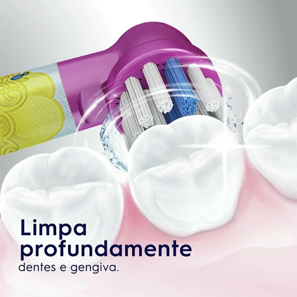 Especialmente projetada para crianças, esta escova limpa os dentes suavemente e remove mais placa bacteriana do que uma escova manual normal, protegendo a saúde do seu filho.