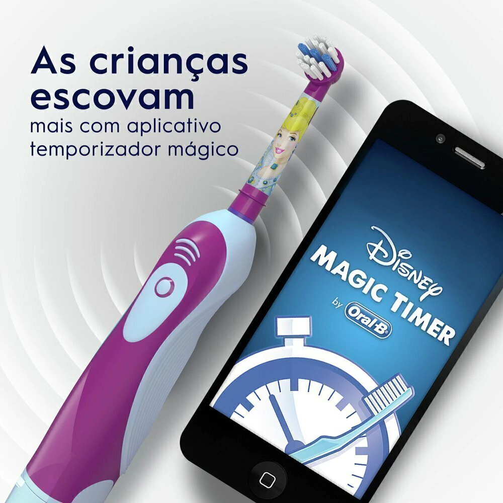 A Escova de Dentes Elétrica Oral-B Kids Princess para crianças maiores de 3 anos combina a diversão das Princesas Disney com a limpeza suave e eficaz de uma escova de dentes Oral-B.