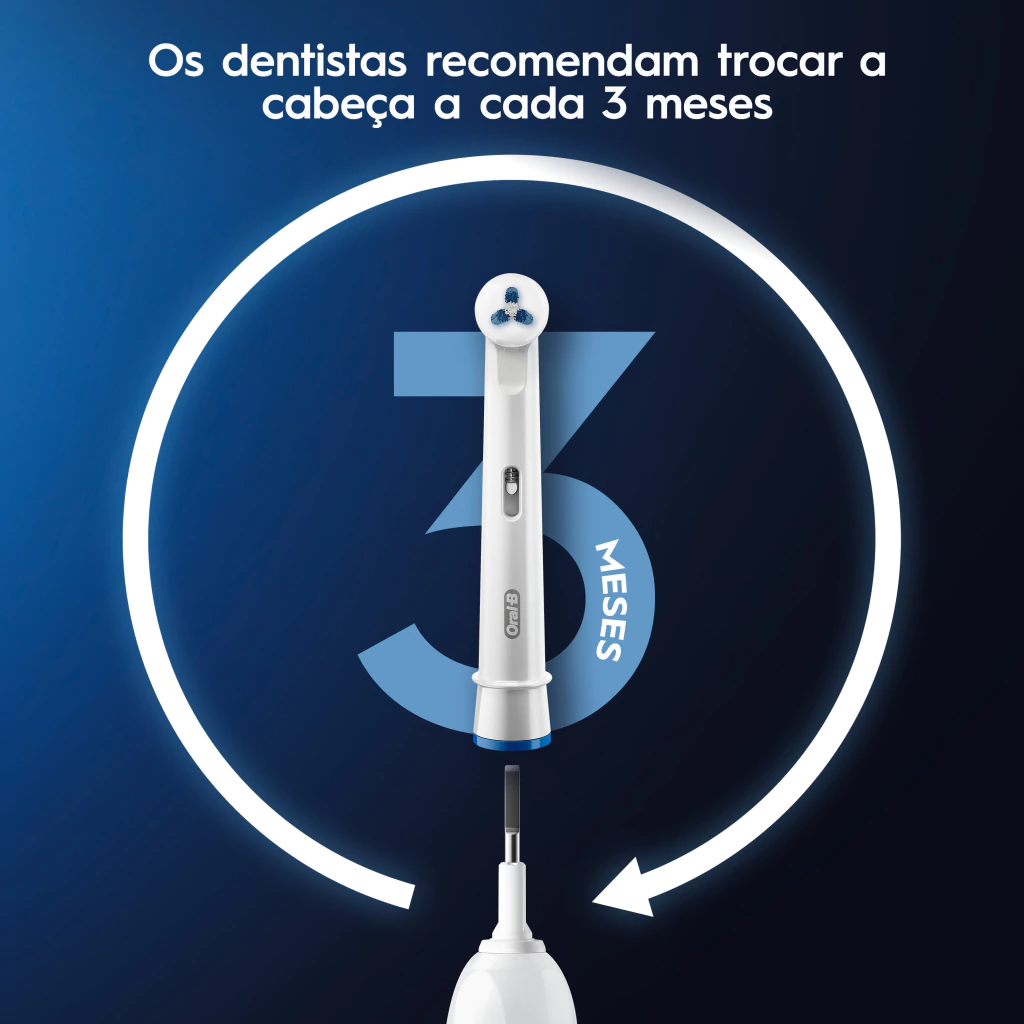 O refil da escova elétrica Oral-B Orthodontic Clean possui dois cabeçotes no mesmo pacote. O primeiro refil é especialmente concebido para limpar ao redor de pontes, coroas, implantes e aparelhos ortodônticos, graças aos seus filamentos centrais de alta densidade que proporcionam uma limpeza profunda, mesmo em áreas de difícil acesso. O segundo refil "Advanced Clean" remove até 100% mais placa do que uma escova manual, graças aos seus filamentos em "X" que permitem maior alcance e limpeza.