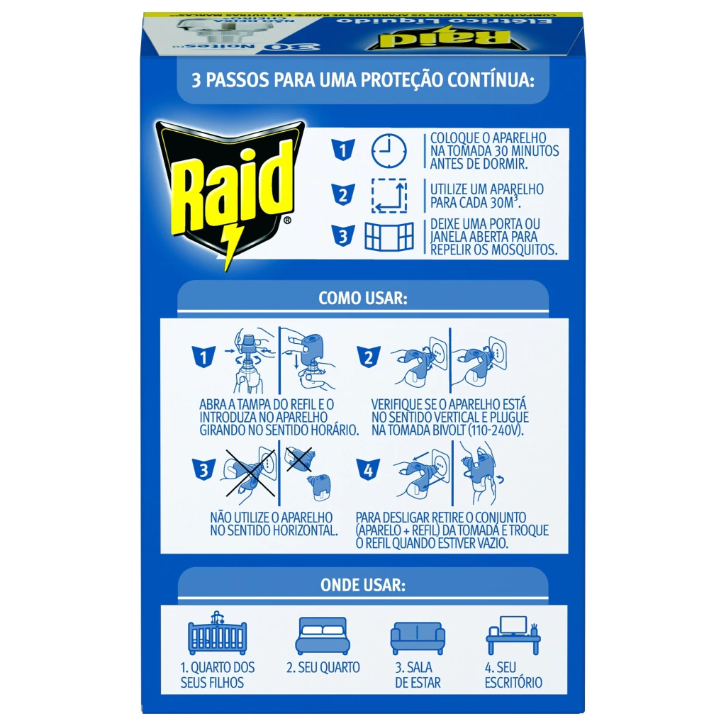 Raid Elétrico Líquido oferece proteção contra os mosquitos por até 45 noites. Disponível nas versões regular, eucalipto e citronela.