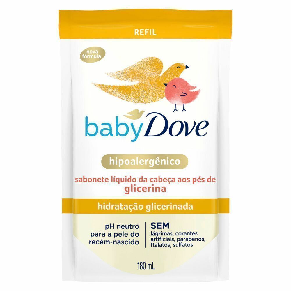Nosso Sabonete Líquido da Cabeça aos Pés Baby Dove Hidratação Glicerinada é hipoalergênica e ajuda a manter a pele saudável desde o primeiro banho do recém-nascido. Comprovadamente minimiza os riscos de alergia com um perfume desenvolvido especialmente para a pele delicada do bebê. A hora do banho com seu bebê é especial e sabemos que você quer o melhor sabonete líquido para esse momento. Como a pele do bebê é mais fina e sensível do que a de um adulto, ela precisa de um cuidado mais delicado. Com glicerina e nutrientes naturalmente encontrados na pele sensível do bebê, o sabonete líquido Baby Dove vai além da limpeza suave e ajuda a repor os nutrientes essenciais e a hidratação que a pele pode perder durante o banho. Modo de uso: Aplique uma pequena quantidade nas mãos, ensaboe delicadamente a pele e o cabelo do seu bebê e enxágue em seguida. Sabonete líquido de Glicerina testado por oftalmologista, dermatologista e pediatra. Experimente também hidratar o corpo do seu pequeno pelo menos duas vezes ao dia com um produto de fórmula suave e hipoalergênica como as Loções Baby Dove, que ajuda a manter a pele do bebê macia, hidratada e bem cuidada por 24h, tornando esse momento ainda mais especial.
