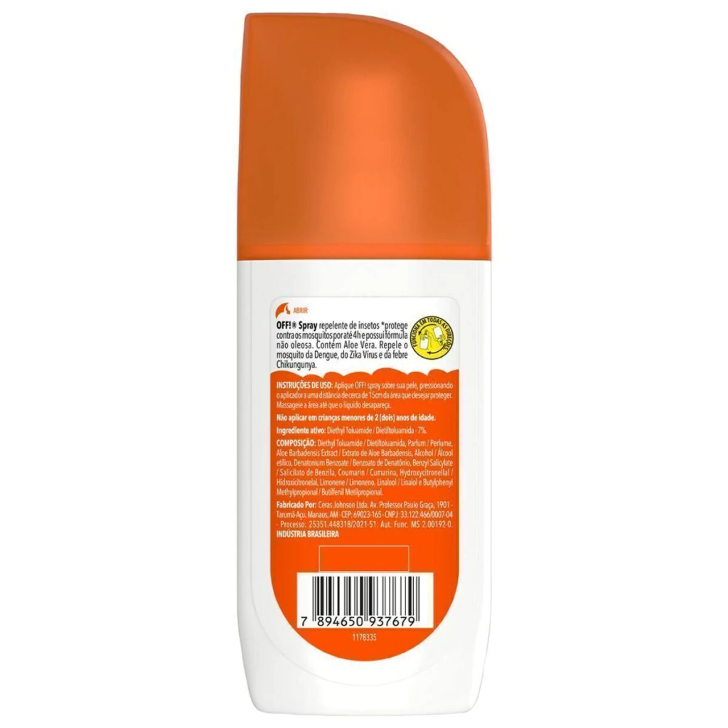 OFF Family Spray possui fórmula não oleosa, com aloe vera. Repele mosquitos que podem transmitir Zika, Dengue, Chikungunya e Febre amarela. Garante proteção por até 4h. Ideal para atividades ao ar livre. Pode ser usado por toda família (crianças acima de 2 anos de idade).