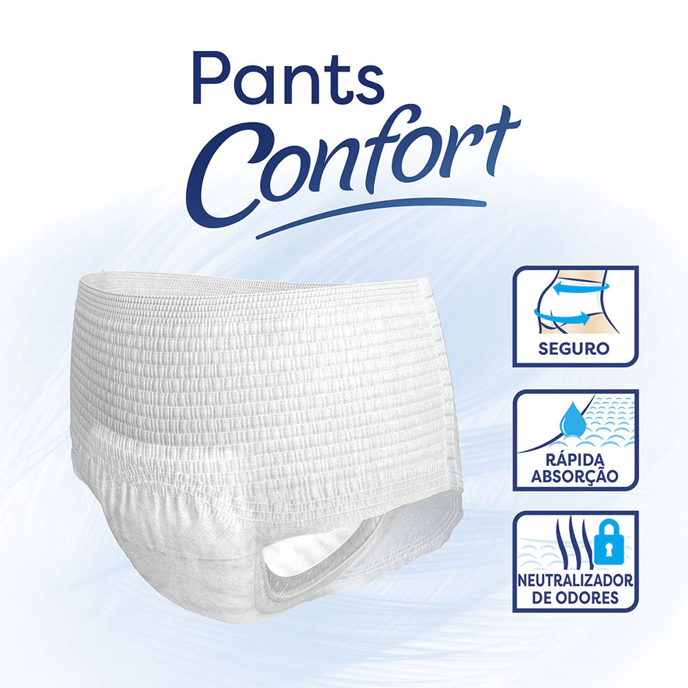 Roupa Íntima Descartável TENA Pants Confort é uma roupa íntima descartável e unissex de rápida absorção, proporcionando ao usuário ativo ou com pouca mobilidade facilidade de uso, discrição e segurança.